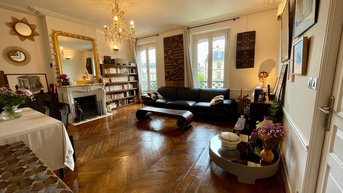 Quiet traditional Parisian apartment in a 19th Century dressed stone building and street on 5th floor with elevator : double living room, bedroom, fully equipped kitchen (dish washer and washing machine/dryer), balcony and private underground parkplace (4 minutes on foot). I furnished and decorated it with love, including paintings. In a neighbourhood vibrant of shops and restaurants, it is 2 minutes on foot from the Metro, from which all Paris must-sees are within a 13-30 minute range.
