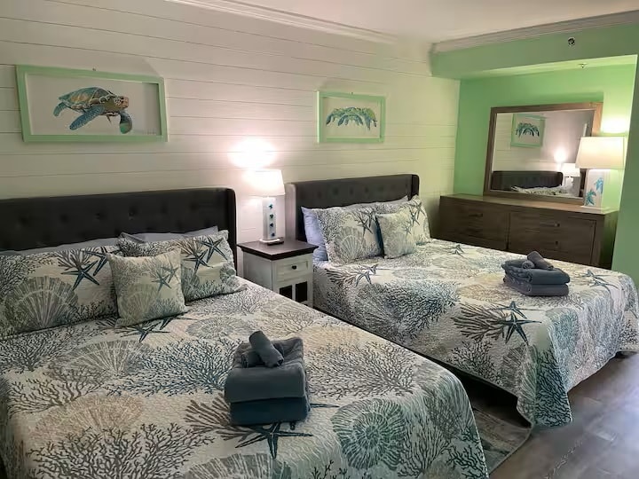Skopri Salty Waves 🌊 il-vaganza diretta tiegħek faċċata tal-oċean! Dan il-condo eleganti tal-11-il sular joffri veduti diretti mill-isbaħ tal-bajja, li jorqdu sa 4 klijenti b' kumdità sħiħa. Gawdi kċina sħiħa, bjankerija tas-sodda doppja u dekor ispirat mill-kosta, ftit passi 'l bogħod mill-iktar attrazzjonijiet popolari ta' Myrtle Beach. Bħala Superhosts passjonati, ħsibna dwar kull dettall biex noffru ⭐⭐⭐⭐⭐ żjara vera. Ibbukkja issa għal dawl tax-xemx, serħan il-moħħ u stil! (L-ebda annimal domestiku, tipjip jew muturi 25+) Mgħammra bi provvisti għall-bajja.