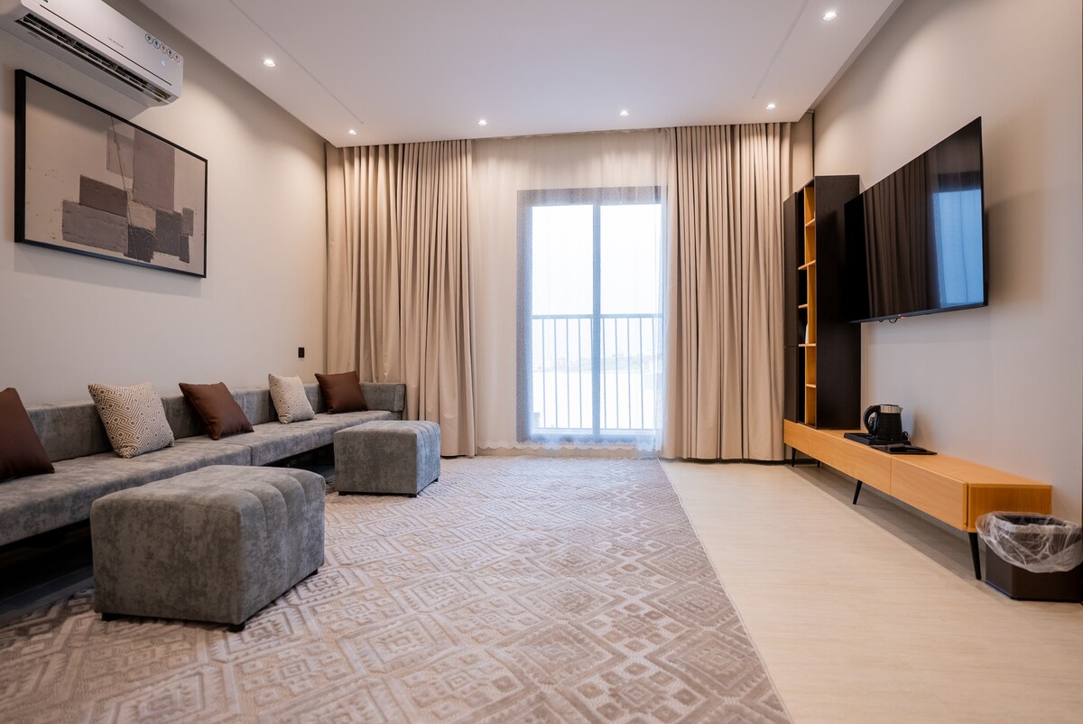 ✨ Esperjenza ta' akkomodazzjoni lussuża fil-belt ta' Khamis Mushait u post speċjali ħafna qrib it-tond ta' Tahlia u faċċata taċ-Ċentru Urban Prince Sultan qrib is-servizzi u r-ristoranti kollha. Merħba fl-appartament b' żewġ ikmamar tas-sodda tiegħek, salott u kċina li tgħaqqad l-eleganza, il-kumdità, . Post 🛋️ fejn toqgħod: Sessjonijiet komdi b' kuluri kwieti, ara l-ispettakli favoriti tiegħek fuq smart TV. Iftaħ🍽️ il-kċina: Kċina moderna u l-mejda tagħha mgħammra b' kollox biex tħejji l-ikliet favoriti tiegħek. 🌟 Dan l-appartament huwa ideali għal vjaġġi tax-xogħol, żjarat qosra, rilassament f' atmosfera kwieta bil-mezzi kollha