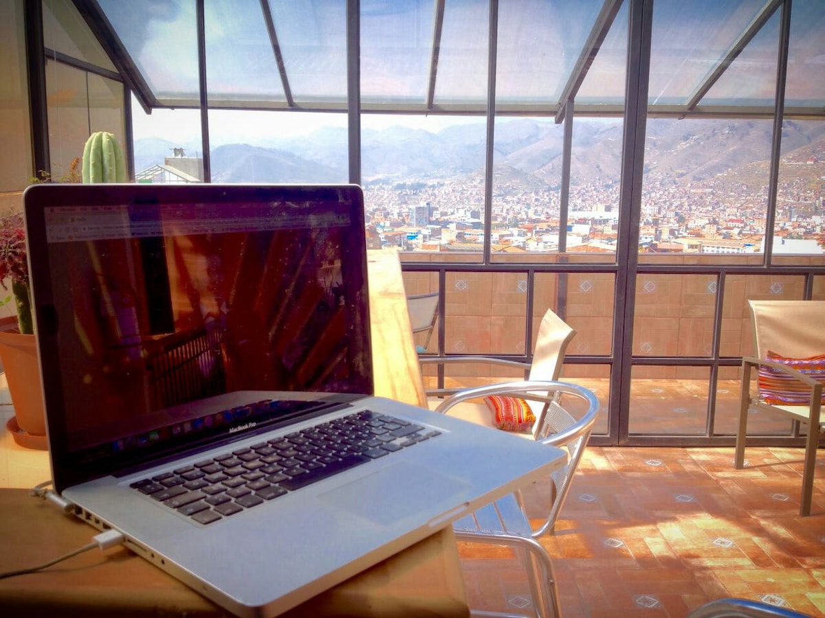 Cute Apartment with a beautiful view of Cusco. Located in the traditional neighborhood of San Blas,it's an ideal spot for couple-family. Righ here family-friendly activities, nightlife, interesting museums,lovely churches.We're just 10 min from the main square. You’ll love our space due to location, the comfy bed, the coziness,amazing view,home feeling.We can offer you AIRPORT PICKUP & TRANSFER,besides we also count with a reliable TRAVEL AGENCY with professional staff