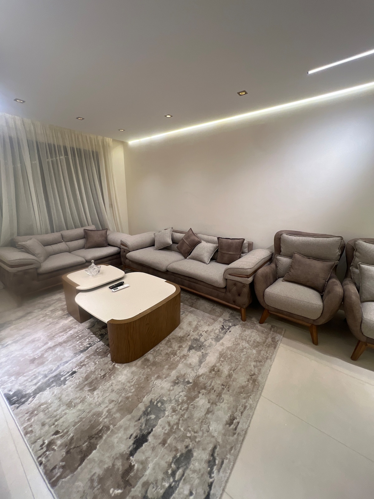 Merħba fl-appartament komdu b'kamra tas-sodda waħda ftit minuti 'l bogħod mill-Ajruport Internazzjonali tal-Kajr. Din il-post modern, li huwa ddisinjat għall-kumdità u l-konvenjenza, huwa perfett għall-vjaġġaturi, il-koppji u l-klijenti tan-negozju li qed ifittxu post nadif u rilassanti fejn joqogħdu qrib ta' kollox fi New Cairo. L-appartament għandu kamra tas-sodda komda, salott imdawwal sew, kċina żgħira mgħammra b'kollox u WiFi b'veloċità għolja. Ideali kemm għal żjarat qosra kif ukoll għal żjarat fit-tul.