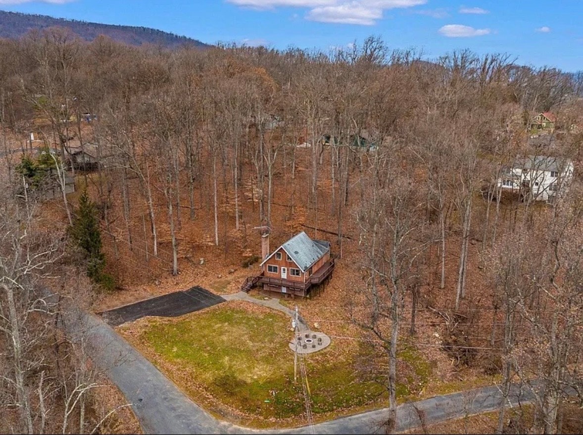 Find peace at this cozy A-frame by Mountain Creek by Michaux State Forest, ideal for couples, friends, or girls’ weekends. Relax on two vast decks overlooking the woods or on the creekside swing or bench, roast s’mores around the fire pit, and in fall and winter be warmed by the glowing electric fireplace inside. Pine walls and twinkling fairy lights around each bed create a magical retreat, with a full kitchen and bath for comfort. Steps from some of the best hiking & mountain biking in PA