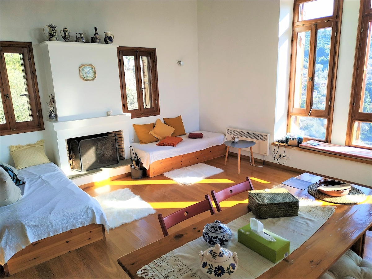 * Saqqijiet ġodda fl-2025! * Dar qadima b' żewġ sulari tal-ġebel imġedda f' biċċa art b' veduta sorprendenti lejn il-baħar Eġew li tinsab fl-ogħla parti tal-villaġġ tradizzjonali Zagora. Għażla tajba għall-familji, grupp ta' ħbieb jew koppji li qed ifittxu l-paċità u l-kumdità għall-vaganza tagħhom; kemm fis-sajf kif ukoll fix-xitwa.