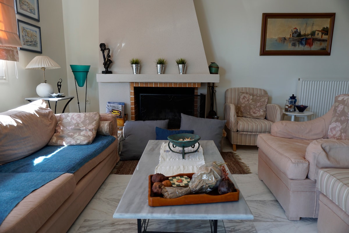Hija tinsab fuq l-għolja ta 'Koumaro, li tmiss mal-belt neoklassika ta' Githio, id-dar bi 3 livelli tiegħi tinsab fuq għolja, u tagħtiha veduta impressjonanti tal-belt ta 'hawn taħt u l-Golf Laconian bħala post sħiħ' il bogħod ħafna biex joffri kemm kumdità kif ukoll privatezza u mgħammra u ddekorata b 'togħma tajba, id-dar tiegħi għandha l-konvenjenzi moderni kollha. It-terrazzini u l-ġonna ta' barra li jinsabu wkoll fuq livelli differenti jagħtu lill-viżitaturi ħafna għażliet biex igawdu l-veduta spettakolari.