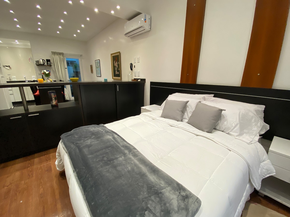 Studio de 23 m² con baño súper amplio y un hermoso patio privado. Disfruta de una cómoda cama de dos plazas, sillón individual para relajarte, y TV Smart de 42”. Cocina totalmente equipada con todo lo necesario. El patio, perfecto para disfrutar del aire libre, cuenta con muebles exteriores. Además, tendrás excelente WiFi para mantenerte conectado. Un espacio ideal para relajarte y disfrutar. ¡Te esperamos!