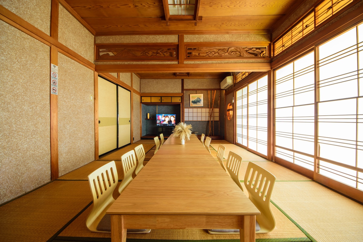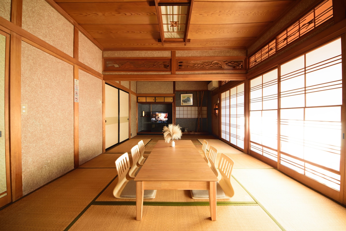 A private stay in a 63-year-old Japanese house surrounded by peaceful rice fields. Experience old Japan with tatami rooms, sliding doors, and soft down futons. Enjoy BBQ or movies in the covered garage and relax with family or friends. Equipped with a kitchen and washer-dryer, perfect for longer stays. Located in central Japan, minutes from Gifu-Hashima Station, with easy access to Kyoto, Osaka, Takayama, and Shirakawa-go. Shops and restaurants nearby the ideal blend of comfort and tranquility.