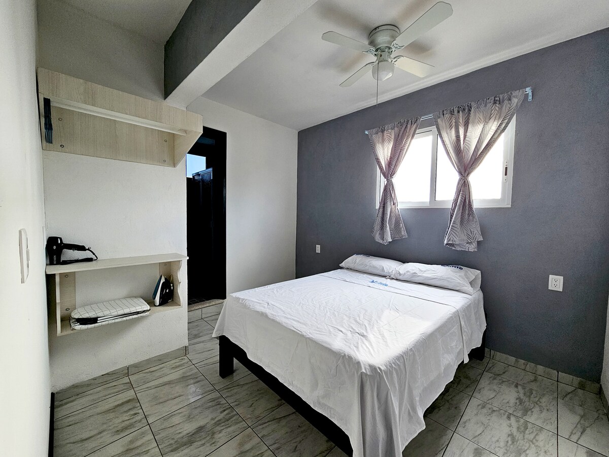 Departamento pequeño a unos pasos del paseo Hidalgo, acogedor, tranquilo y céntrico a una cuadra de la hermosa catedral de nuestra ciudad Tehuacán. Ideal para quien busca un hospedaje céntrico. Seguridad, confort, limpieza y tranquilidad. Con todos los servicios. Departamento en planta alta primer piso. NO CONTAMOS CON ESTACIONAMIENTO. Hora máxima de check in 9:00 pm.