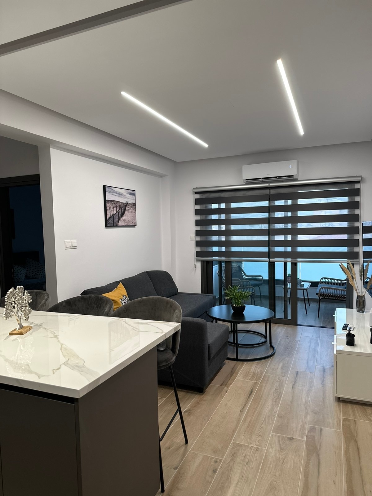 Appartament Kontemporanju b' 2 Sodod 1,6 km 'il bogħod mill-baħar f' Linopetra, Limassol. Għandek terrazzin privat fuq il-bejt b' jacuzzi! Il-bejt huwa mgħammar b' BBQ, fossa tan-nar, washbasin, salott u żona tal-ikel b' veduta tal-belt. Hemm 2 ikmamar tas-sodda doppji, 2 ikmamar tal-banju, kċina moderna mgħammra b' kollox b' ikel, gallarija mgħottija, sufan TAL-ĠENN b' mekkaniżmu li jestendi. Gawdi minn Nespresso, l-Smart TV. Jekk jogħġbok żomm f' moħħok li hemm bini għaddej tul it-triq, li jista' jibda kmieni minħabba s-sħana.