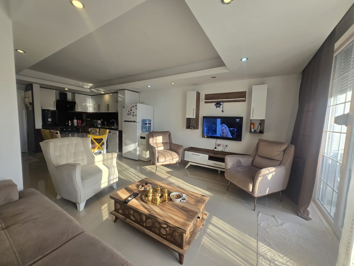 Gawdi esperjenza eleganti f 'dan il-post li jinsab fiċ-ċentru. Arja kkundizzjonata f 'kull kamra L-appartament 1+1 eleganti u spazjuż tagħna b' pixxina huwa ddisinjat għalik. Postijiet bħal ajruport, Lara Beach, Antik Storiku jinsabu qrib ħafna. Migros SuperMarket, il-forn jinsab fl-istess bini. Id-dar tagħna hija mnaddfa professjonalment kull darba taċ-checkin u taċ-check-out. Aħna noffru servizz ta' akkomodazzjoni fejn se tiġi biss bil-bagalji tiegħek. 5.5 km sal-ajruport Deepo Outlet Center 7 km Supermarket ta' Migros 10 metri Lara Beach 7 km