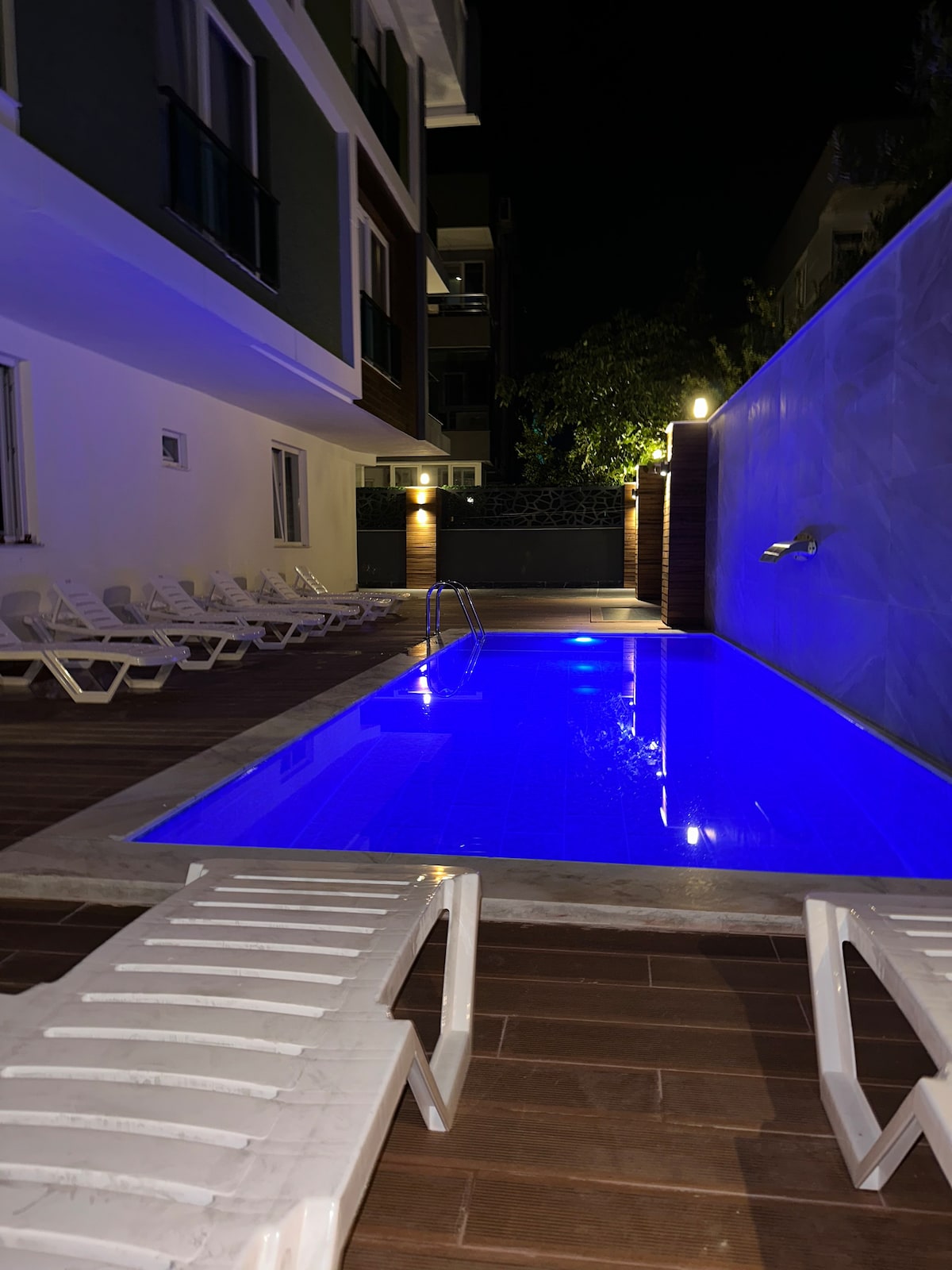 Kumpless ta 'residenza ta' kwalità għolja b' sigurtà 24 siegħa kuljum. Hija distanza bil-mixi sal-bajja ta' Lara. Din ir-residenza għandha dak kollu li teħtieġ għal vaganza lussuża tal-ewwel klassi. Il-bitħa tat-tfal, il-pixxina msaħħna fuq ġewwa u l-pixxini fuq barra, il-banju Tork u s-sawna. Is-supermarkets u r-ristoranti jinsabu qrib ħafna. L-appartamenti kollha għandhom l-internet b' veloċità għolja tagħhom stess. Supermarket ta' Migros-300 m Ristoranti-500 m Lara Beach-800 m TerraCity mall-10 km The Land of Legends-14 km Iċ-Ċentru tal-Belt ta' Kaleiçi-18-il kilometru