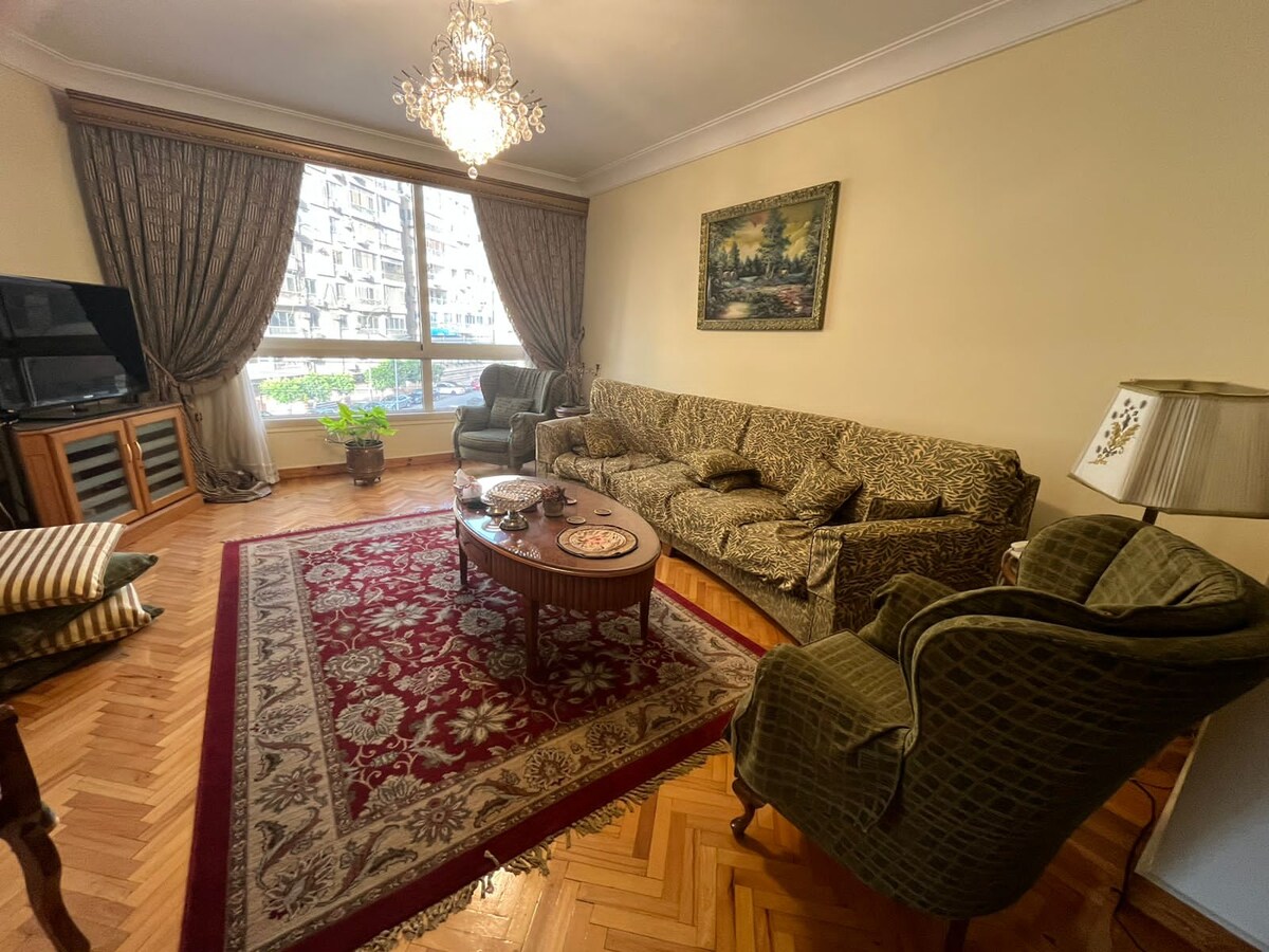 Appartament lussuż iddisinjat b 'mod sabiħ . Sular privat 2400 pied kwadru. Ħarba perfetta għall-familja/individwi li qed ifittxu żjara mgħammra tajjeb f 'Ard El Golf- Heliopolis Cairo. Veduta panoramika tal-ġnien flimkien ma 'żona speċifika li tleqq ix-xemx servuta b' arja kkundizzjonata kompletament (kiesħa u sħuna). Kumditajiet ta 'standard għoli ispirati. Il-viċinat ta 'merħba. L-istazzjon tal-metro huwa distanza ta' 8 mints bil-mixi, Ċentri kummerċjali u merċa famużi huma pjuttost qrib. Kollox ma huwa aħjar minn post uniku sigur.