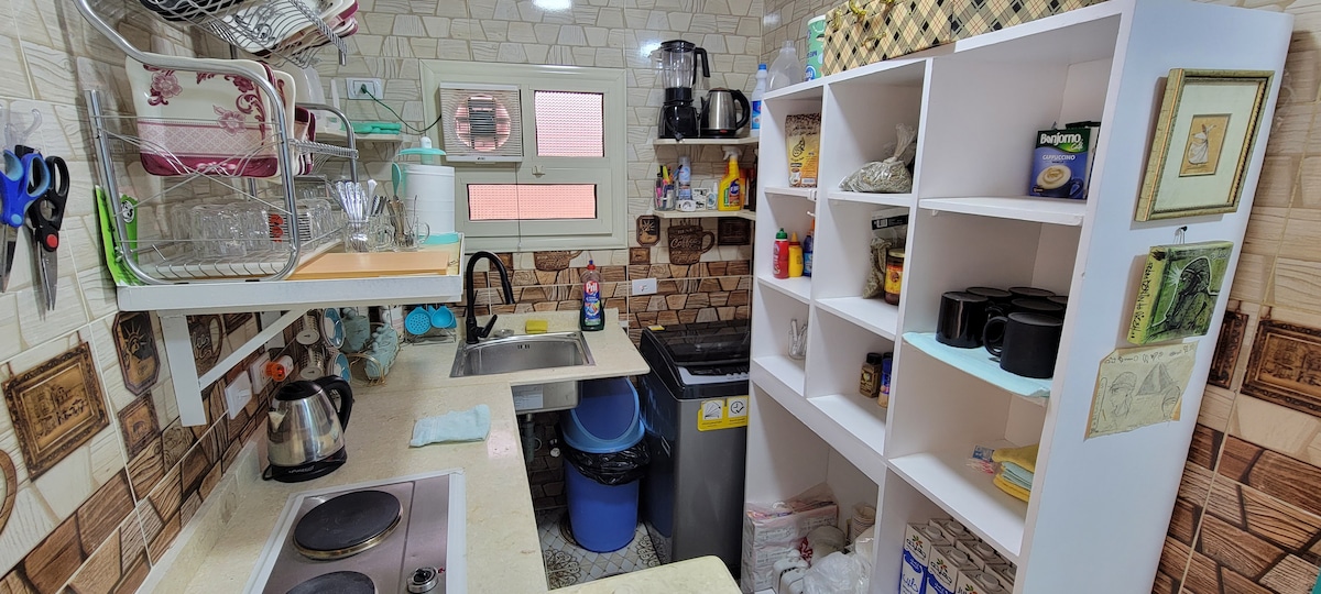 Minuta 'l bogħod mid-daħla tal-piramidi u l-appartament tal-uffiċċju tal-biljetti mdawra b' ristoranti u kafetteriji. L-appartament għandu aċċess għal servizz ieħor fuq il-bejt u lukanda tal-bini ta' quddiem bħas-servizz tat-tindif tad-dar u l-ħasil bla ħlas.. 2 friġġ 2 tv 2 tv 2 TV TV Corner kitchenette u daħla privata bla limitu bla limitu tal-WiFi