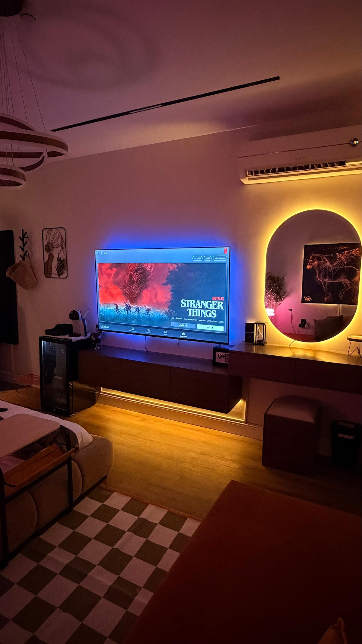 نوفر لك إقامة فريدة وراقية يتم فيها توفير جميع وسائل الراحة التي تستحقها، ونقوم هنا بتوفير وسائل الترفية من اشتراكات Netflix وShahid ، كما تحصل هنا على الخصوصية التامة وتسجيل الدخول الذاتي، في موقع مميز وقريب من جميع الاماكن السياحية والخدمية.