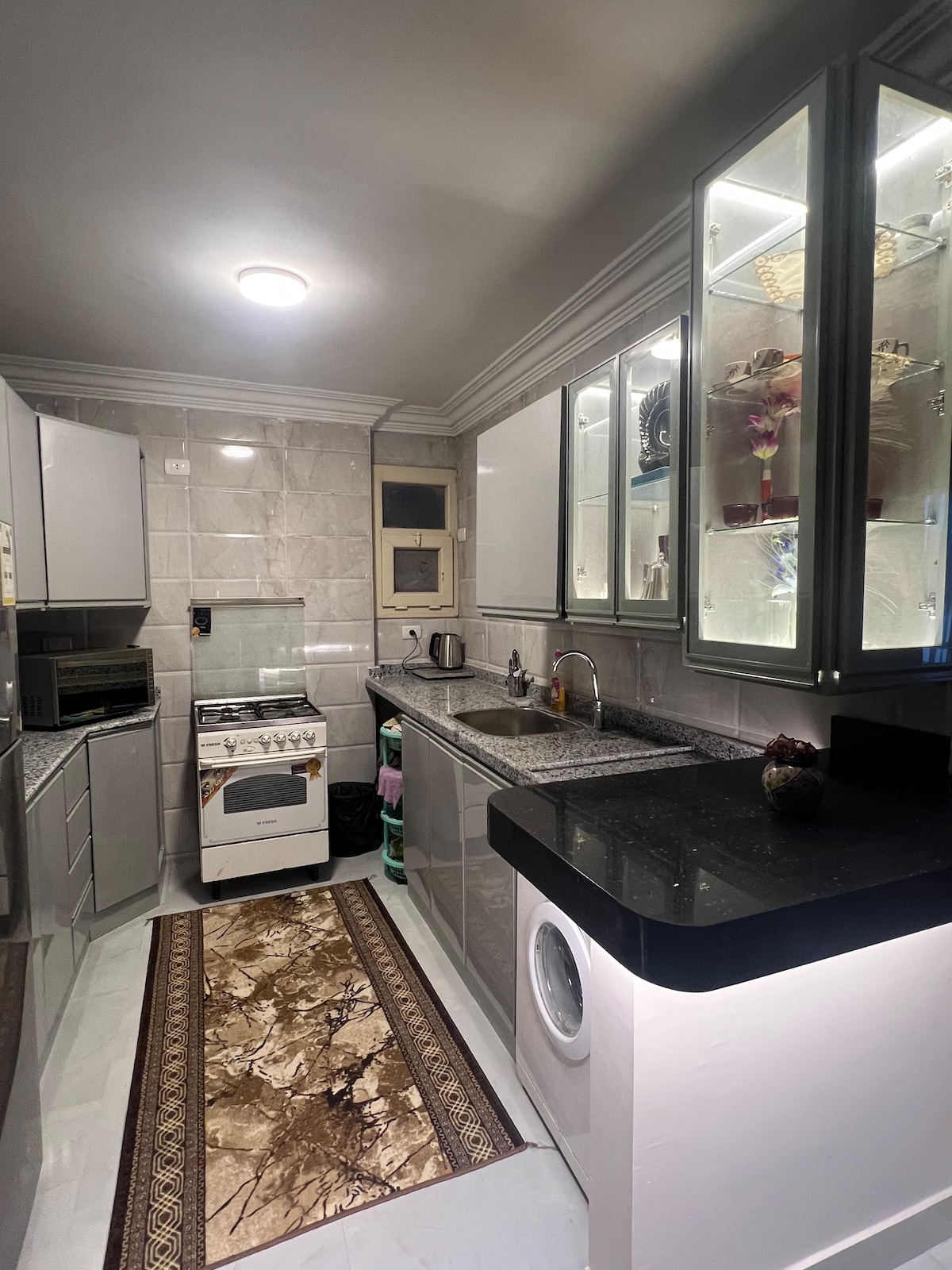 Furnished and air-conditioned apartment in Rich House Compound, in front of Cairo Airport and the Saudi German Hospital, fourth floor. There are three elevators. Fully air-conditioned, Wi-Fi, modern appliances, new air conditioners and electrical appliances.