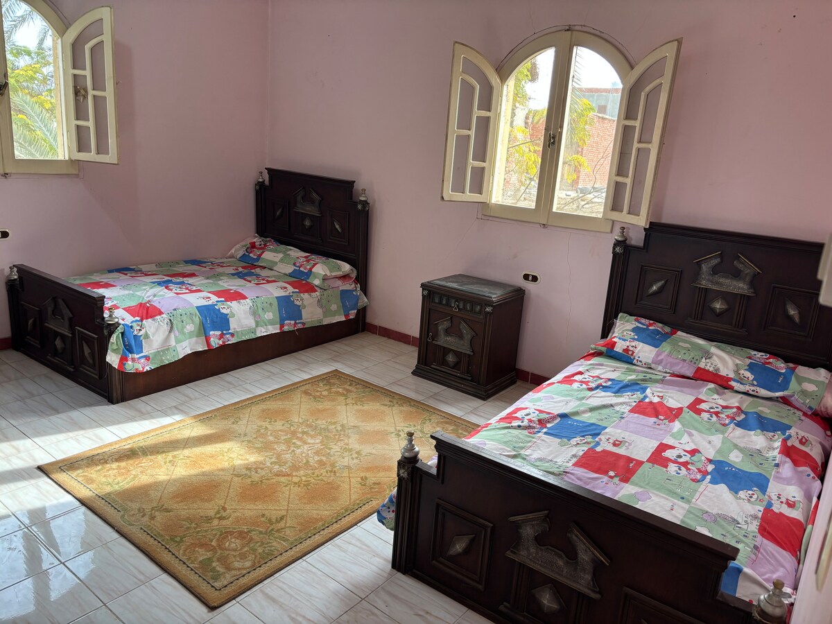 Brand new cozy apartment in El Mansoura – Talkha City. This family well-maintained apartment offers a comfortable living space for families. The apartment features 2 closed bedrooms, one with a king size bed and dressing while the other is with 2 single beds, a modern unique full bathroom, a spacious modern living room with dining table, and a fully equipped kitchen. It is fully equipped with all the amenities needed to make your stay unique and memorable. There is a smart TV, Wifi internet.
