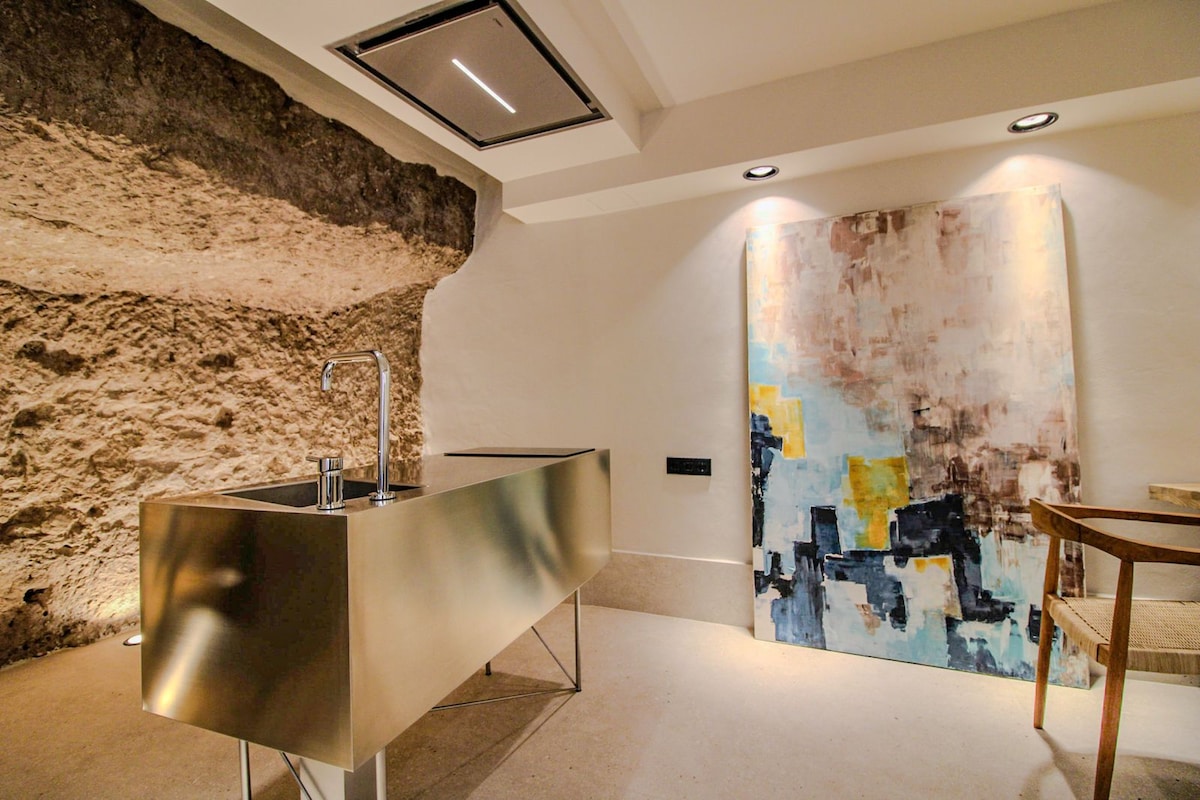 Appartament diafanuż b' fireplace u kċina ġewwa l-loft. B' veduti sbieħ mit-tieqa tagħha ta' 5 m, li toħloq atmosfera rilassata u paċifika. Għandha terrazzin kbir, b' għamara tal-barbikju u tal-ġnien esklussivament għall-appartamenti. Injam tan-nar bla ħlas, kif ukoll servizz tal-wifi, TV bil-ħlas.