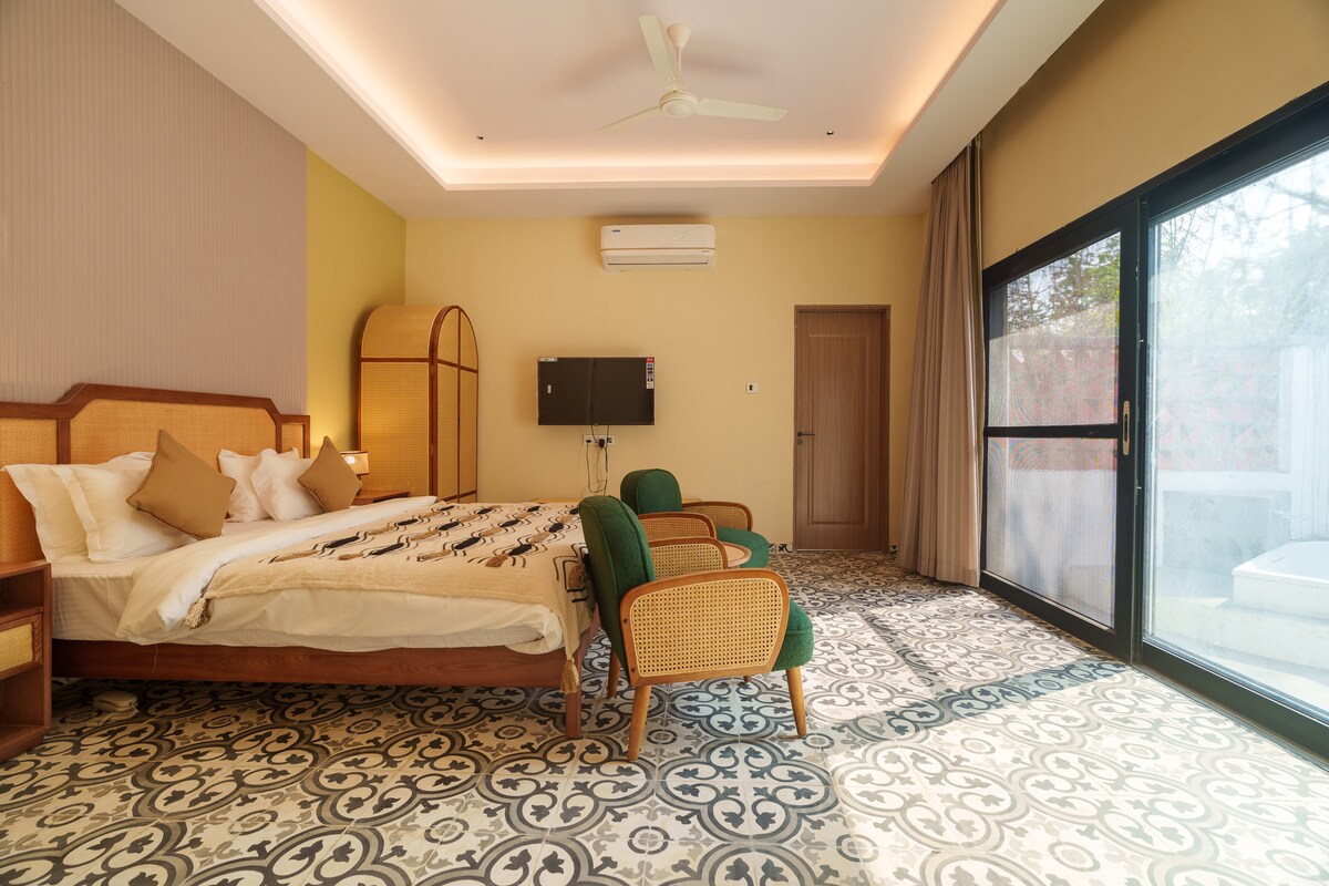 Imdawwar f' baħar aħdar, The Wildernest Tale jġib l-ispirtu ta' ritmu tropikali fit-tarf ta' Mumbai. B' interjuri tal-ħamrija, abjad artab, u toni tal-injam sħun, l-ispazju jitkellem bil-kalma f' kull rokna. Fuq barra, ġungla ta' pjanti tgeżwer madwar il-villa, li toħloq post fejn toqgħod li jinħass ħaj. Agħlaq fil-jacuzzi hekk kif l-għasafar jiċċaqalqu fil-qrib, inġabru qrib in-nirien tax-xquq wara nżul ix-xemx. Kull dettall huwa mfassal għal mumenti bil-mod u sinifikanti..