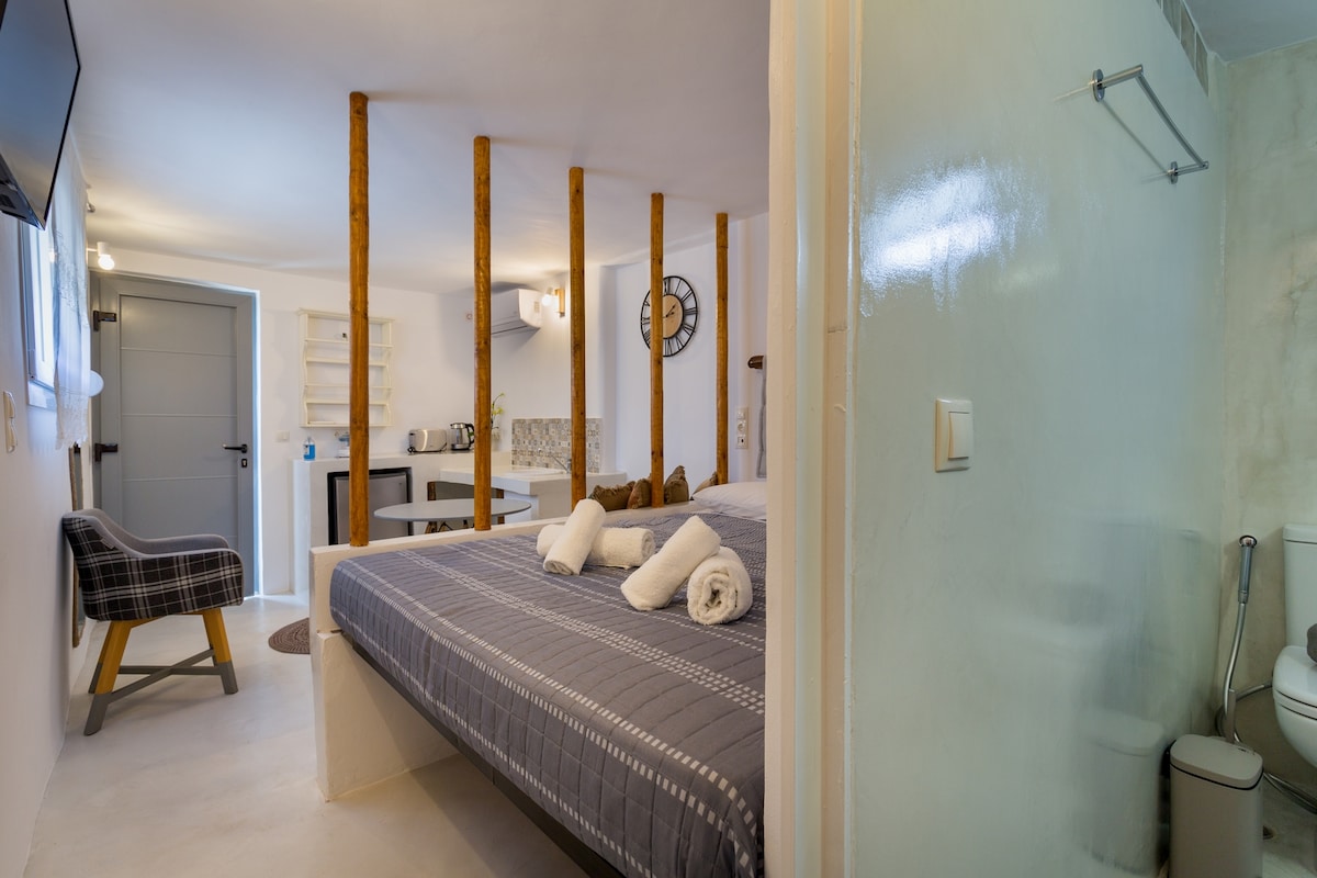 Studjo komdu u rinnovat reċentement mgħammar kompletament, għal żjara komda, huwa biss 100 metru 'l bogħod mill-baħar u 200 metru miċ-ċentru tar-raħal, hemm bajja organizzata (Apople Restaurant b' sodod tax-xemx mikrija u umbrelel prezzijiet speċjali għall-klijenti tagħna). Fiċ-ċentru se ssib ukoll, spiżerija, ħwienet tar-rigali, uffiċċju tal-kiri tal-karozzi, parkeġġ bla ħlas, Il-waqfa KTEL tinsab barra mill-akkomodazzjoni