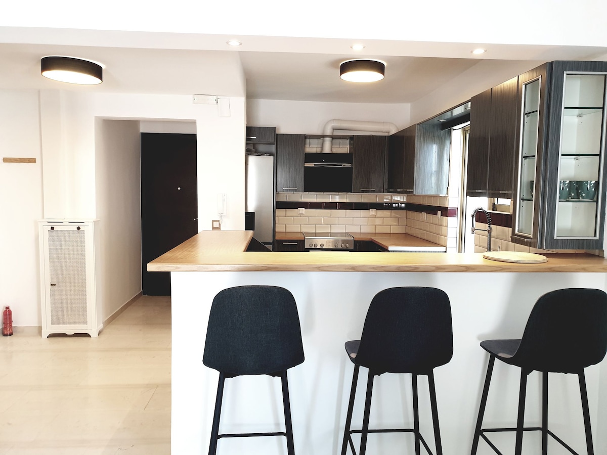 Appartament kompletament rinnovat f 'Alimos, Ateni, il-Greċja. Appartament spettakolari, komdu u fuq il-bejt, b' terrazzin privat kbir, li joffri veduti mill-isbaħ tar-Riviera Ateniana. Ġewwa, iddisinjati b 'mod minimu u b' togħma tajba, nodfa ħafna, mgħammra b 'kollox u b' mod lussuż għal żjarat qosra jew twal, xitwa jew sajf. Gawdi l-vaganza tiegħek, billi tħallat il-mumenti b 'mod faċli ħdejn il-bajja (2 minuti mixi) u ċ-Ċentru ta' Ateni bl-istorja u l-atmosfera mill-aqwa tiegħu.