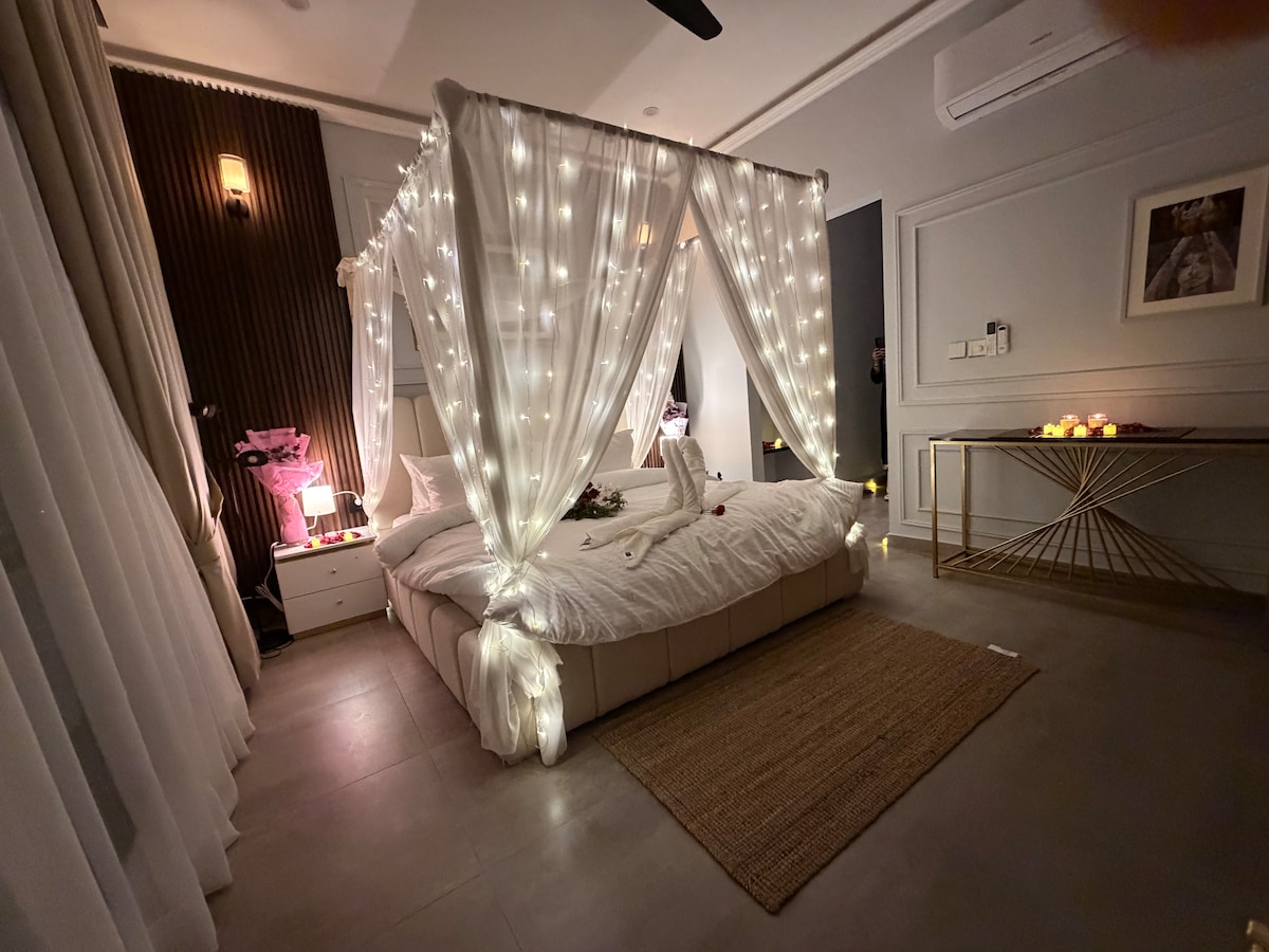 Merħba fis-suites eleganti tagħna b' żewġt ikmamar tas-sodda ġewwa DHA 5 Islamabad. Gawdi l-konvenjenza ta' vjaġġ ta' malajr u rrilassa fi spazju li fih dekor sabiħ u ċinema tad-dar mgħammra b' kollox. Ideali għall-vjaġġaturi li qed ifittxu l-kumdità u d-divertiment, dal-post fejn toqgħod komdu joffri kumditajiet moderni f' post mill-aqwa. Hija porzjon kompletament separat b' daħla u parkeġġ separati għalih, adattat għall-familja, għalhekk sigur ħafna u paċifiku. Ma tistax torganizza parties u mużika qawwija. Koppji mhux miżżewġa mhux permessi.