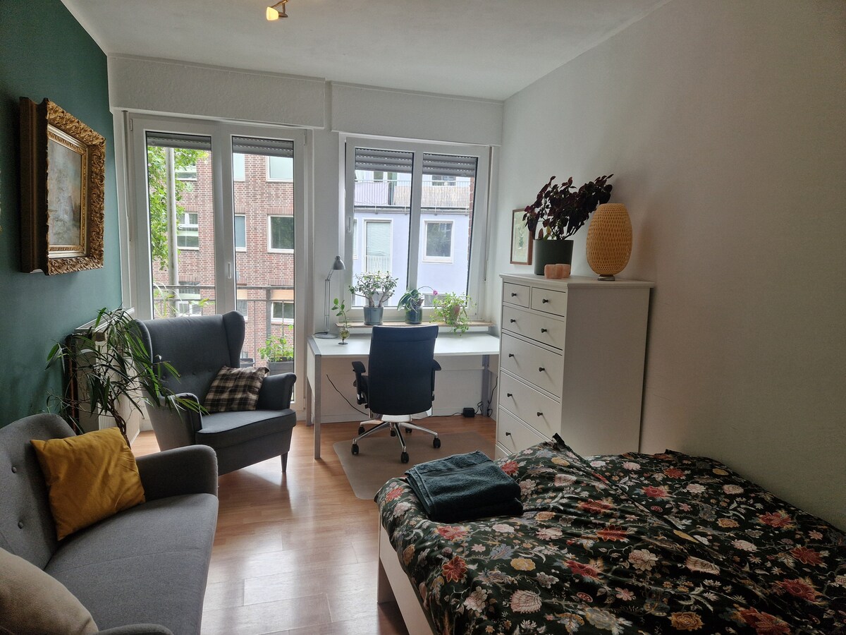 Aħna nikru l-appartament attic tagħna fid-distrett kwiet ta 'Sentrup. L-Aasee jinsab f 'distanza ta' mixi. Minkejja l-post urban, huwa aħdar ħafna, minflok storbju tat-triq, tista 'tisma' l-kanzunetta tal-għasafar. Hemm kċina żgħira bil-kċina żgħira, kamra tal-banju, kif ukoll żona tal-irqad/ għajxien. Għandek dawn it-tliet kmamar kollha għalik innifsek. Iċ-ċentru tal-belt jista 'jintlaħaq fi ftit minuti bir-rota jew bil-karozza tal-linja.
