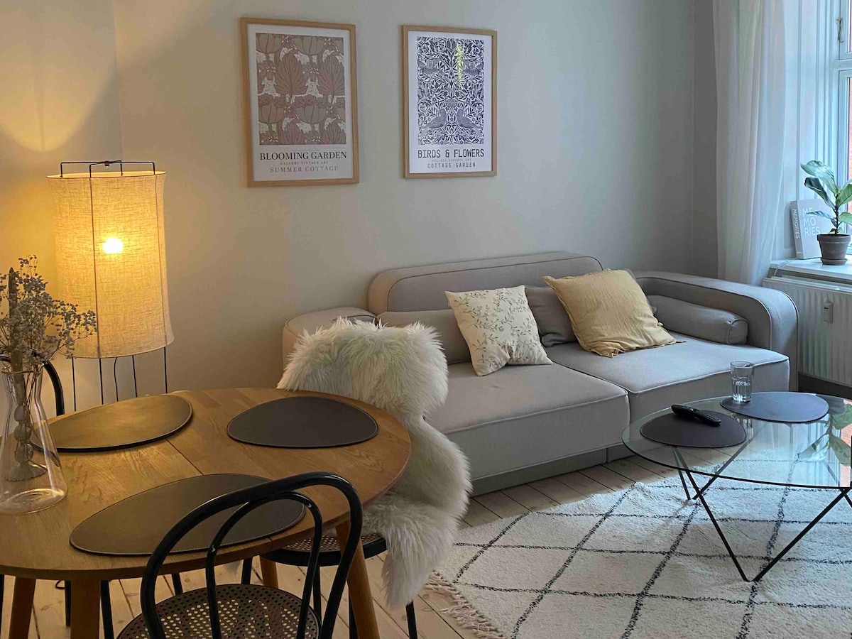Stay like a local in my cosy 2-room apartment in central - yet quiet - Amagerbro. Postive features: - Close to the city center, the beach, the airport and public transport. - Bright apartment at the top, 5th floor - No cleaning fee (I know you'll take good care of my home ;) To consider: - No elevator and 97 steps top the top floor - Typical Copenhagen bathroom - small but functional