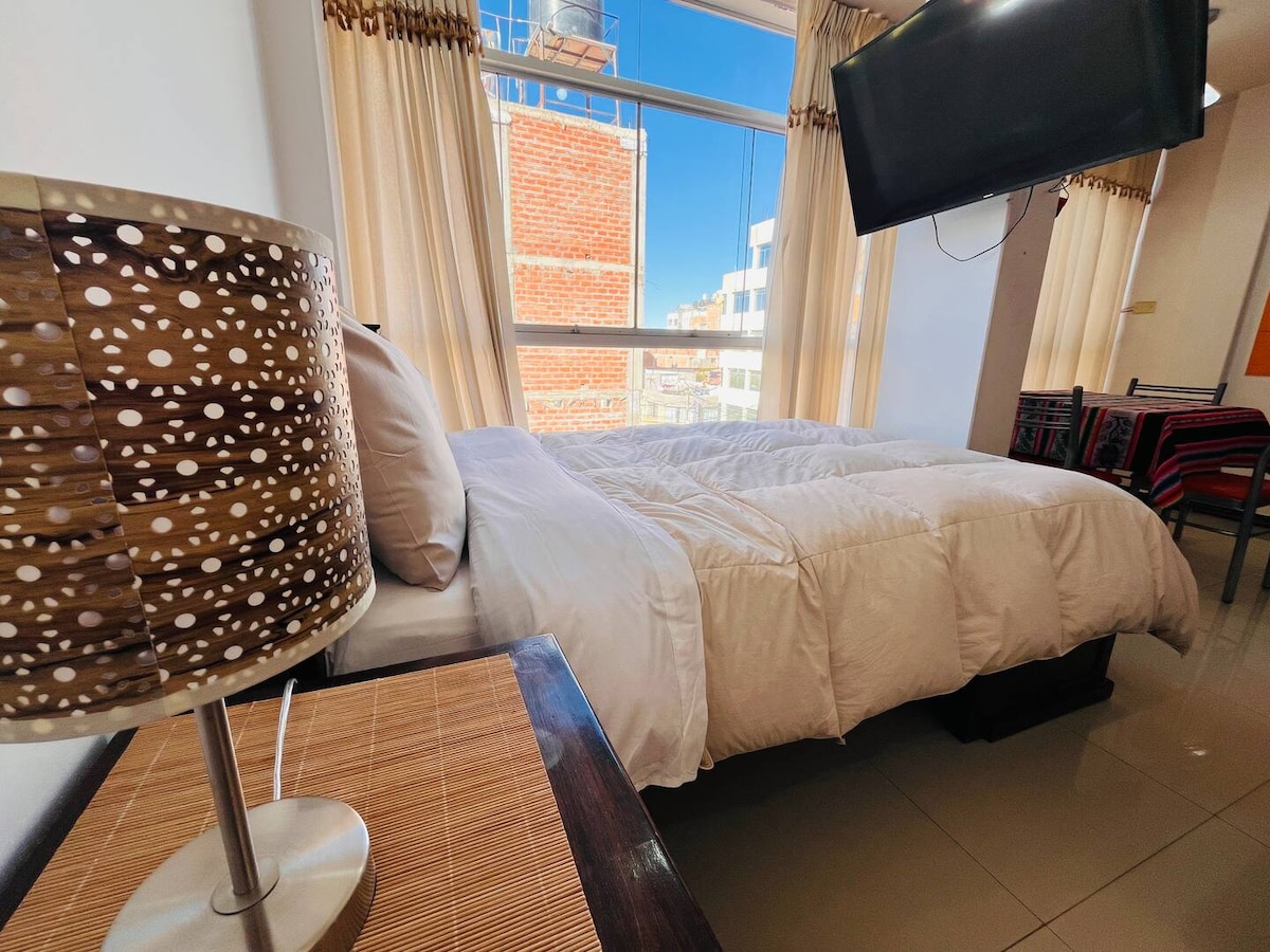 Skopri Puno mill-appartament modern u komdu tagħna, 6 cdrs minn Plaza de Armas, f' żona kwieta. Tajbin għall-familji, għall-vjaġġaturi għax-xogħol u għat-turisti. B' veduta tal-Lag Titicaca, dan l-ispazju f' bini ta' 8 sulari b' lift iwiegħed żjara mill-isbaħ. Gawdi l-modernità, il-kumdità u veduta mill-isbaħ, filwaqt li tiżgura żjara perfetta għad-divertiment jew għax-xogħol. Esperjenza l-aħjar miż-żewġ dinjiet - kwiet qrib iċ-ċentru. Esperjenza mill-isbaħ qed tistenniek.
