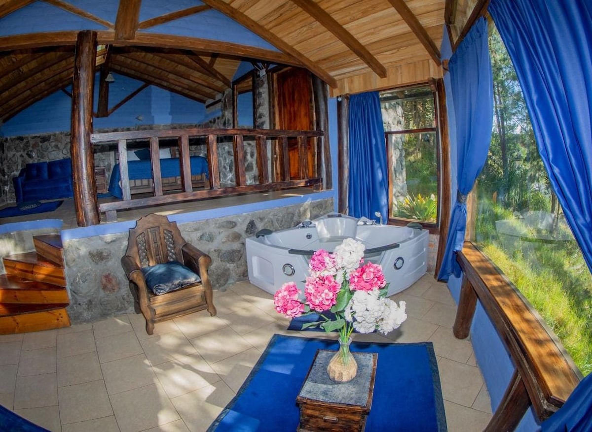 The Miel Guaytambo Cabin is a family retreat surrounded by nature. It features one King bed and two Twin beds, accommodating up to 6 guests. Enjoy a spacious private jacuzzi for up to 4 people, perfect for relaxing with family or friends. An ideal place for comfort, tranquility, and a deep connection with nature.