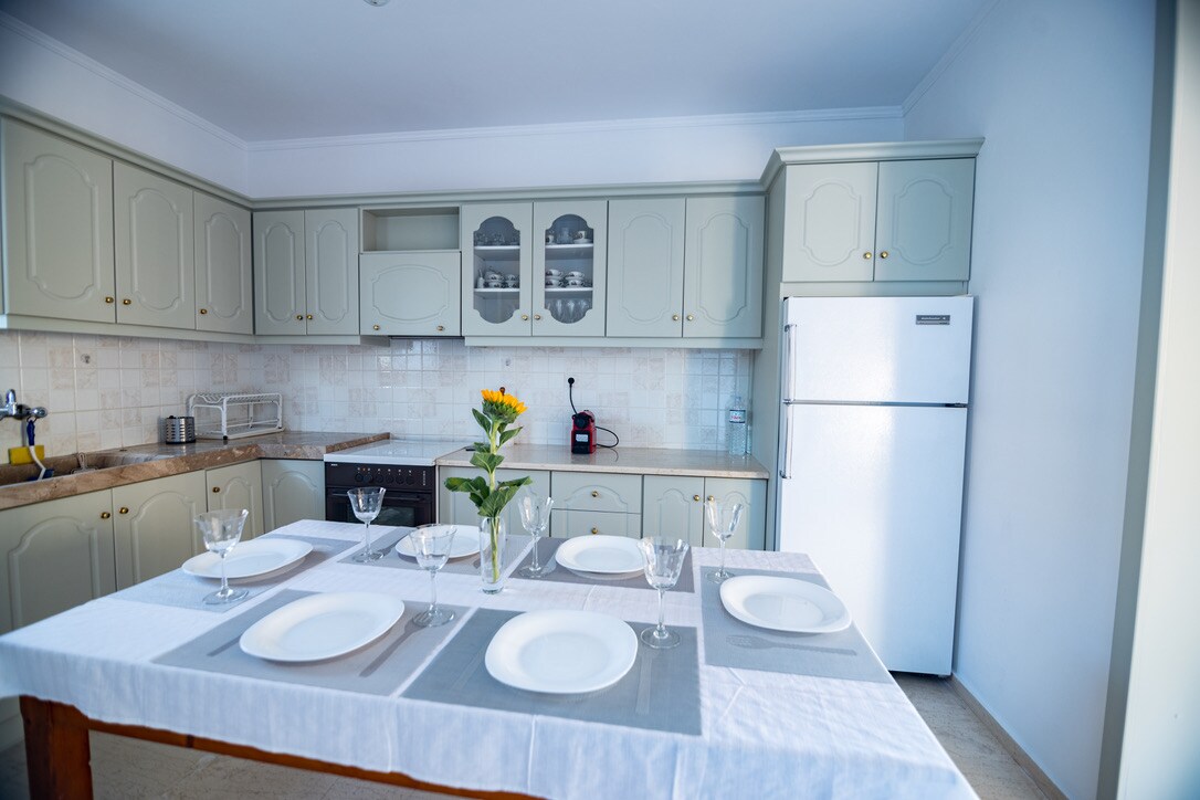 Appartament kwiet ftit metri miċ-ċentru ta 'Olympia u qrib is-sit arkeoloġiku f' distanza bil-mixi. Tliet ikmamar tas-sodda ewlenin b 'kamra tal-banju en-suite, spazju maqsum mal-oħrajn b' sufan sodda u kamra tal-banju separata. Gallarija , terrazzin u bitħa madwar l-appartament f 'kuntatt mal-ġnien. Parkeġġ komdu fit-triq quddiem l-appartament. Kċina mgħammra b 'kollox biex tipprepara l-ikliet.