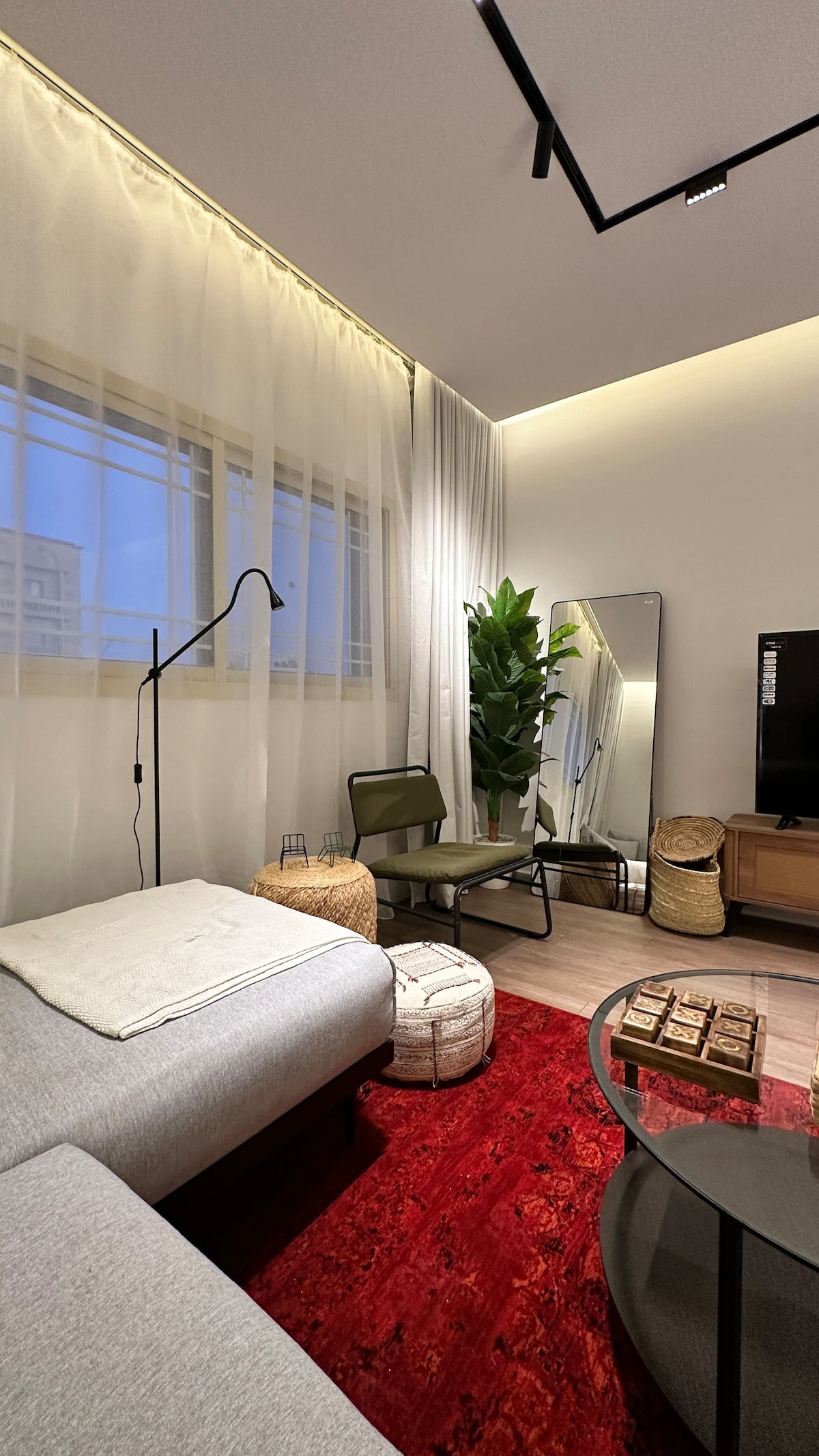Gawdi żjara moderna ġewwa Olaya ta' Riyadh. Dan l-appartament eleganti għandu gallarija privata b' post fejn toqgħod bilqiegħda fuq barra, kamra tas-sodda komda b' separazzjoni intelliġenti, żona tas-salott komda, kċina żgħira mgħammra b' kollox, magna tal-ħasil ġewwa unità u spazju fejn taħdem. Mixja ta' 8 minuti biss sal-metro, b' Al Jazirah Hypermarket eżatt mat-triq. Iż-żona hija vibranti u mimlija ristoranti u kafetteriji-perfetta għal dawk li jħobbu l-ikel u għal żjarat ta' negozju jew divertiment.