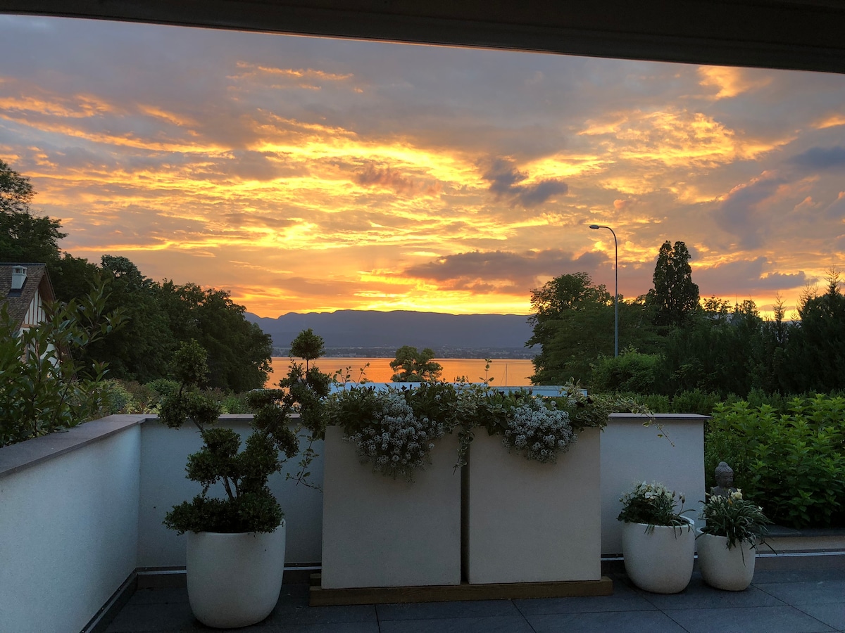 ĠDIDA! Pixxina issa disponibbli għall-klijenti tagħna! 'Le Petit Clos Suites' hija oażi vera ta' eleganza u kwieta. Il-punt tat-tluq ideali għall-eskursjonijiet fuq il-lag jew fuq il-muntanji ta' Jura, il-villa hija biss 20 km 'il bogħod mill-bliet vibranti u attraenti ta' Ġinevra u Lausanne. U fi żmien 10 minuti bil-mixi biss, tasal fiċ-ċentru, fil-ħwienet, fir-ristoranti u fl-istazzjon tal-ferrovija ta' Nyon. Kemm jekk għal vaganza riġeneranti kif ukoll għal xogħol mill-bogħod, 'Le Petit Clos Suites' hija l-bejt perfett biex tirrilassa u terġa' tistrieħ.