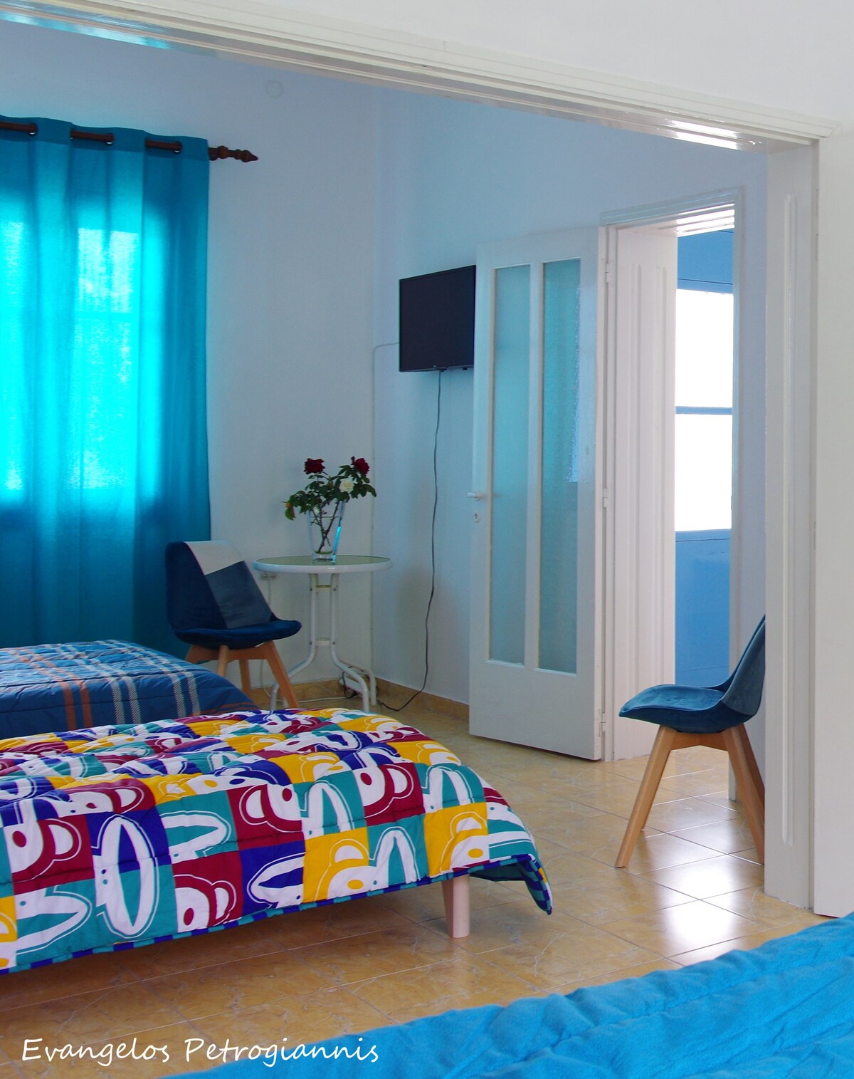 PROPJETÀ ĠDIDA FJAMANTA MIBDULA. Merħba ġewwa Theros Residence II, dar qrib il-bajja mdawla u komda, kompletament rinnovata, biss 15-il metru 'l bogħod mill-bajja ramlija. Għandha kamra tas-sodda waħda, kċina mgħammra b' kollox u salott b' sufan sodda. Umbrella u siġġijiet qed jistennew l-użu esklussiv tiegħek fuq il-bajja. Ideali għall-mistrieħ, għall-baħar u għall-vaganzi Griegi awtentiċi. Id-dar toffri internet Starlink, kif ukoll servizzi ta' divertiment ta' abbonament (Netflix, Apple TV, Cosmote TV