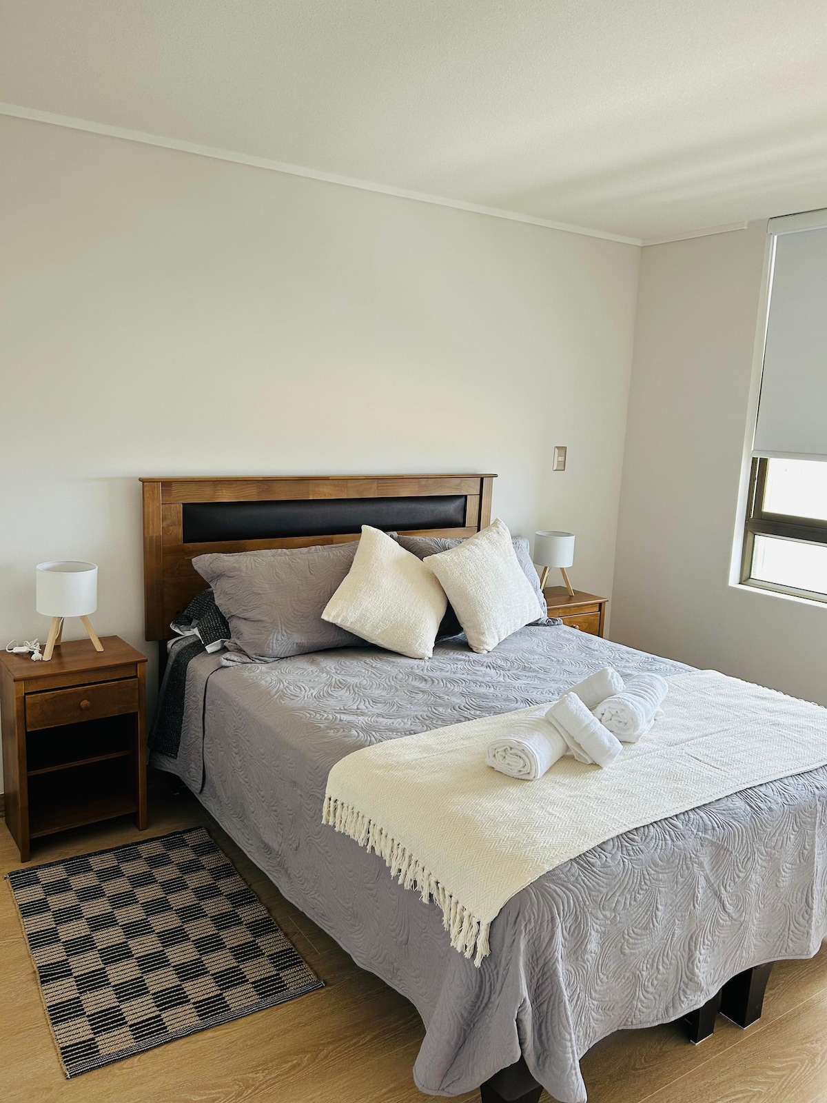 Appartament 1D u 1B, mgħammar u mgħammar f 'Antofagasta. Jinsabu f 'kondominju, 2 toroq mit-terminal tal-karozzi tal-linja u fuq triq kostali b' konnessjoni eċċellenti mal-ajruport u ċ-ċentru kummerċjali. Għandu aċċess ikkontrollat u kumditajiet fl-ispazji komuni, bħal gym b 'xejn fuq talba, quinchos bi spiża addizzjonali u aċċess għal pixxina b' xejn, għalkemm soġġett għad-disponibbiltà. Parkeġġ disponibbli. Għandu Smart TV u WiFi bla ħlas. M 'għandux sinjal tat-TV miftuħ.