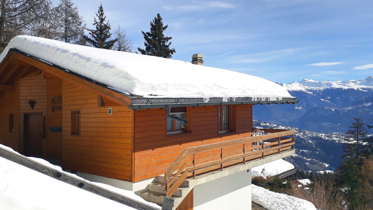 Dan ix-chalet spazjuż sa 12-il persuna (270 m2) joffri ambjent uniku, li jgħaqqad il-kumdità u l-aċċessibbiltà ma' veduti panoramiċi mill-isbaħ tal-Alpi ta' Valais. Tinsab f' post komdu biss 100 metru 'l bogħod mill-kwadru tar-raħal fejn jinsab il-ġnien tal-borra bil-ġirja tat-toboggan u l-lift tat-trabi. Il-post fejn jinsab ix-chalet jippermettilek tagħmel kollox bil-mixi: ħwienet, pixxina u spa, għoljiet tal-iskijjar... kollox jinsab fil-qrib! Għar-rilassament tiegħek, gawdi l-jacuzzi sbieħ barra x-chalet.