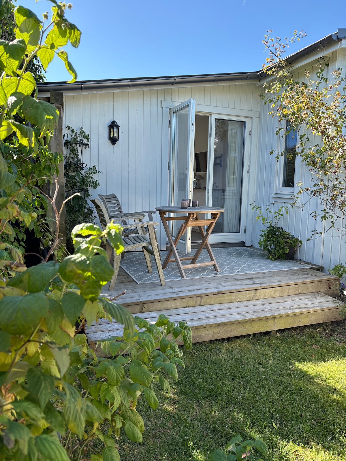 Merħba fil-ġenna żgħira tagħna! Fil-kantuniera tal-ġnien tagħna għandna dar li nikru. Huwa qrib l-oċean u l-bajja fir-raħal antik tas-sajd Träslövsläge. Jekk tixtieq tikri din id-dar għal ġimgħa jew aktar minn saff ta 'Settembru, jekk jogħġbok ibgħatli talba għal skont! Din id-dar żgħira (23 metru kwadru) għandha terrazzin komdu tagħha fuq il-ħaxix taħt is-siġra tat-tuffieħ. Qrib xarabanks, ristorant, bar tal-ġelat u l-bajja (0,5 km). 6 km miċ-ċentru ta 'Varberg.
