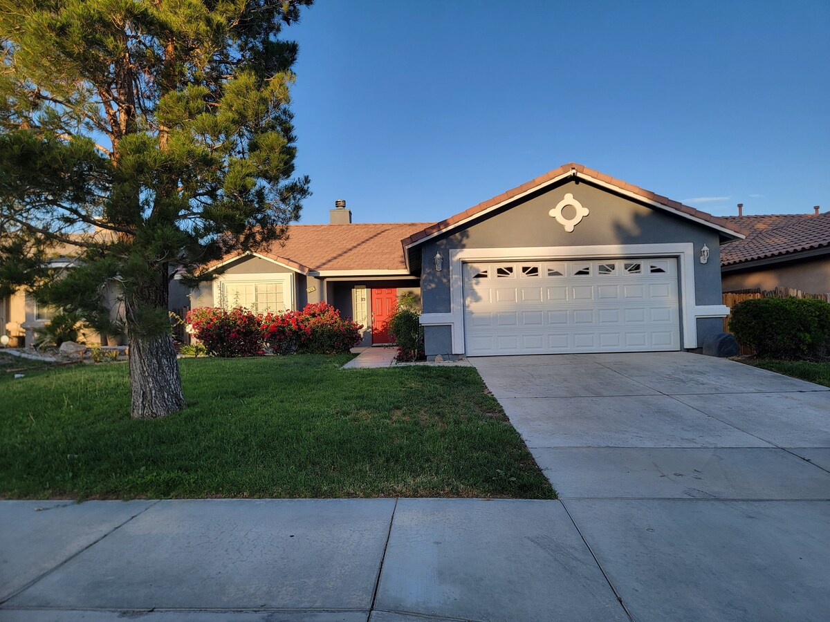 Irrilassa mal-familja kollha! Spazjuż ta '3 ikmamar tas-sodda+ kamra tal-klijenti/ żewġ banju u nofs Dar. Jinsabu f 'komunità sigura u amikevoli li tinsab fiċ-ċentru. Id-dar kollha hija d-definizzjoni vera ta 'għajxien ta' kumdità b' aċċenti u arredamenti. Id-dar mgħammra b 'mod sħiħ toffri għajxien komdu w/Wi-Fi, TV intelliġenti, magna tal-kafè, magna tal-ħasil + dryer, pixxina, bbq, fossa tan-nar u aktar! Qrib ristoranti, Victor Valley Mall, Scandia, Movies, 15 FWY, 395 HWY, Ontario Mills & Airport.