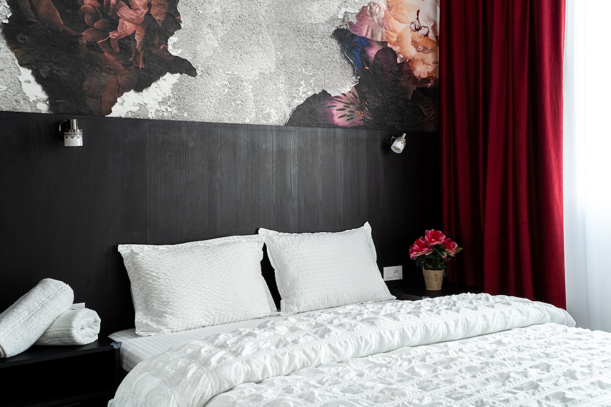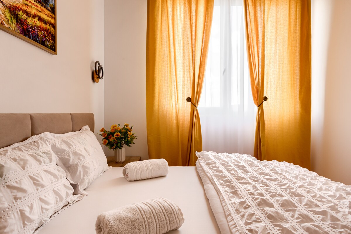 Appartament modern u komdu fiċ-ċentru ta' Arad, ideali għar-rilassament jew għan-negozju. Mgħammra b' kollox, bi kċina miftuħa, żona komda fejn toqgħod, arja kkundizzjonata u Wi-Fi veloċi. Tinsab f' kumpless ġdid b' parkeġġ sigur, ftit passi 'l bogħod minn AFI Mall, toffri aċċess ta' malajr għal attrazzjonijiet, ħwienet u ristoranti. Ideali għal vaganza fil-belt jew għal żjarat fit-tul!