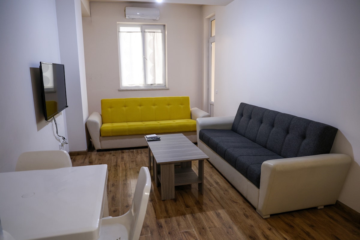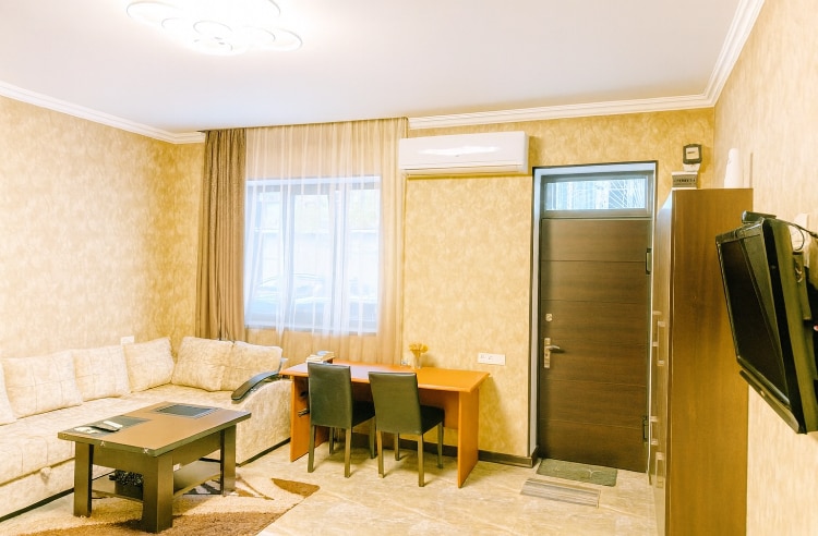 Dan huwa appartament kalm u komdu fuq l-avenue ta' Komitas. L-appartament jinsab fuq it-tieni linja, għalhekk m' hemm l-ebda storbju tat-traffiku u trab. Lil hinn mit-twieqi hemm park żgħir u t-twieqi qed iħarsu lejn is-siġar. Hemm swieq, ristoranti u waqfa tax-xarabank eżatt ħdejn il-bini. L-appartament huwa mgħammar bil-kumditajiet kollha meħtieġa.