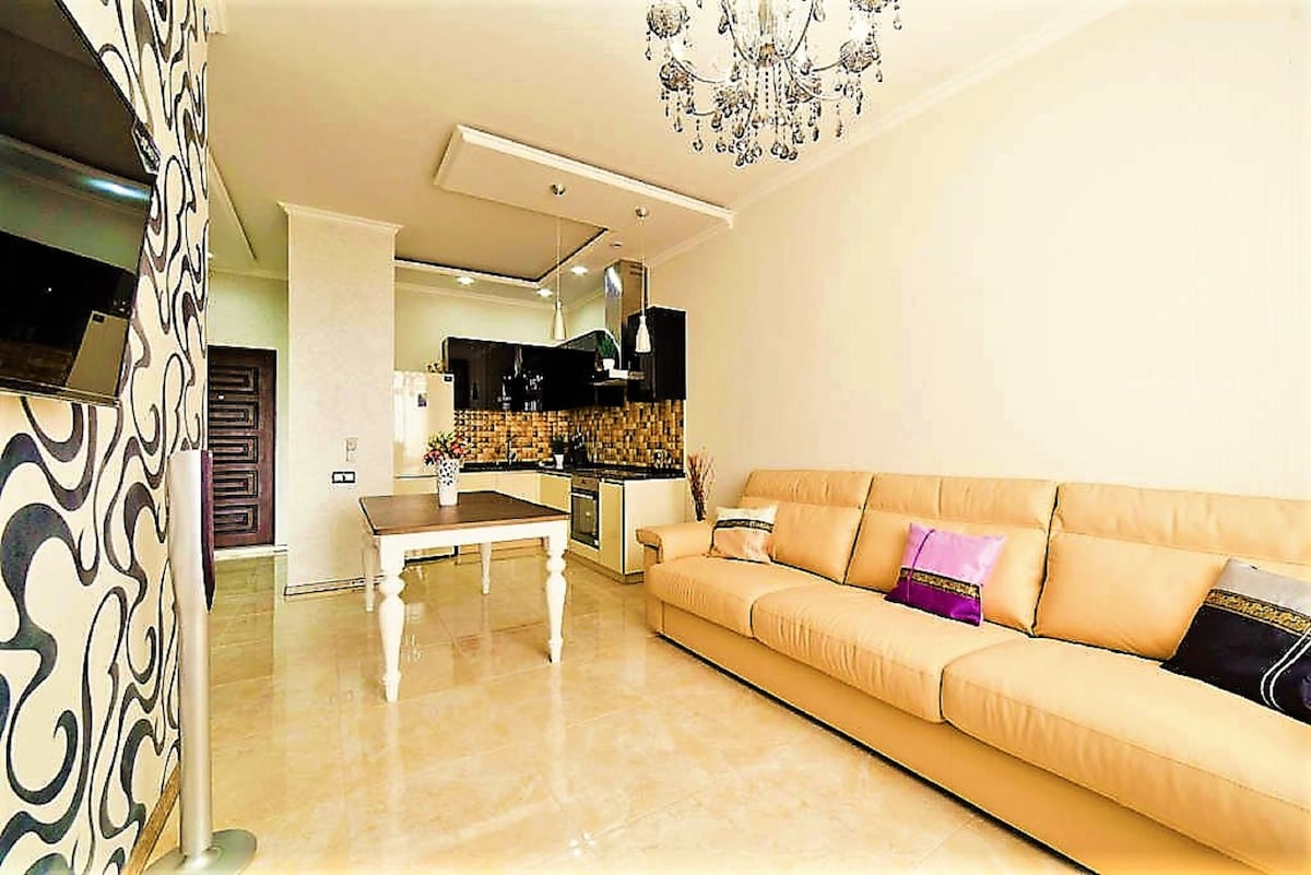 Kumpless elit "43 PEARL" f' Arcadia, żona mħarsa b' sorveljanza bil-vidjow, supermarket, kafetteriji, ristoranti, artijiet tal-logħob għat-tfal, fitness fuq barra u żona ta' park b' funtani. IL-BAĦAR u l-bajjiet, il-klabbs tal-lejl u r-ristoranti, l-Aquapark, l-attrazzjonijiet jinsabu f' mixja ta' 5 minuti. Il-21 sular, veduta tal-baħar laterali, rinnovazzjoni tad-disinjatur, salott b' żona tal-irqad apposta, kċina separata. L-appartament huwa mgħammar b' għamara u appliances tad-dar. Smart TV WiFi Ejja u rrilassa!