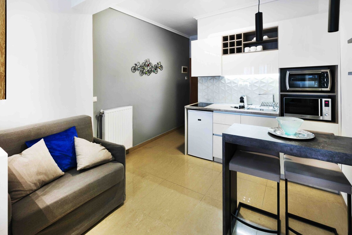 Gawdi ż-żjara tiegħek fil-belt sabiħa ta' Tessaloniki fl-istudio modern u eleganti tagħna li jinsab fil-qalba tal-belt. Biss blokki 'l bogħod minn mużewijiet, punti ta' interess storiċi, ristoranti tal-għaġeb, kafetteriji, bars u ħafna iktar. Perfetta għall-vaganzi jew għall-vjaġġi tax-xogħol, dan l-istudio se jkun il-bażi perfetta li se tgħinek tirrilassa u timla l-batteriji tiegħek filwaqt li tirritorna mill-laqgħat tan-negozju tiegħek jew tiskopri dak kollu li toffri l-belt.