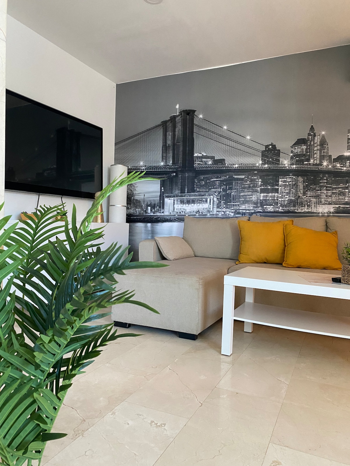 Aire acondicionado, smart TV 55" fibra internet.En una zona muy céntrica y tranquila. Acogedor con sala de estar con sofa cama y dormitorio con cama de matrimonio, cocina y baño independiente, dispone de un restaurante todo dentro de un hotel. Ubicado frente a un centro comercial con farmacias ,mercados, restaurantes, discotecas y al lado de la playa. Situado en el sur de la isla en unos de los puntos más turisticos y visitados. Dispone de Piscinas una para adultos y otra para niños
