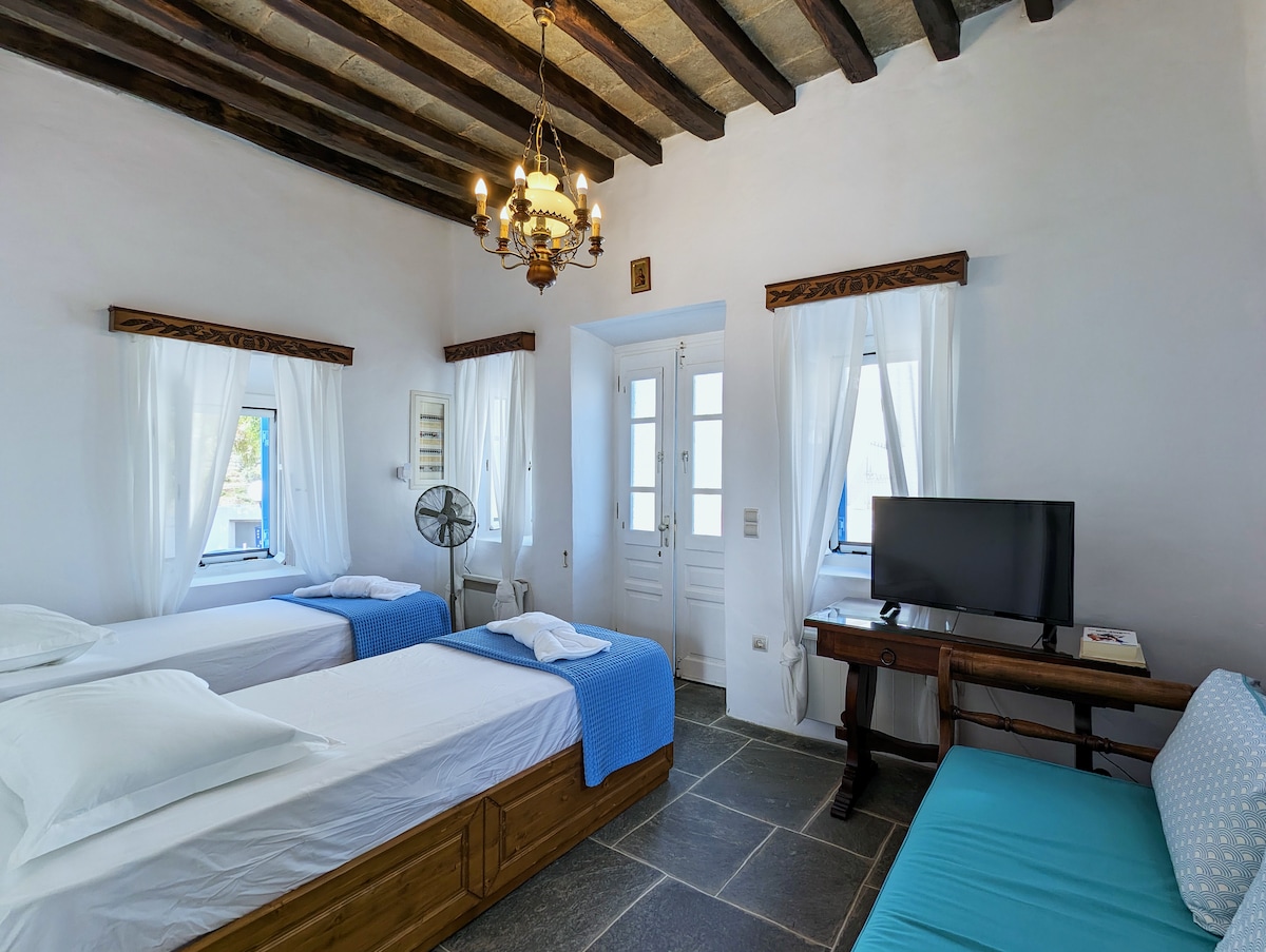Our apartments is a complex of fully furnished traditional homes that are built with love & respect to the Cyclades traditions and architecture. All of our studios have balconies where you can enjoy the view of the Aegean Sea and the small villages as well.Our warm hospitality and our homemade treats will make you have a wonderful time.