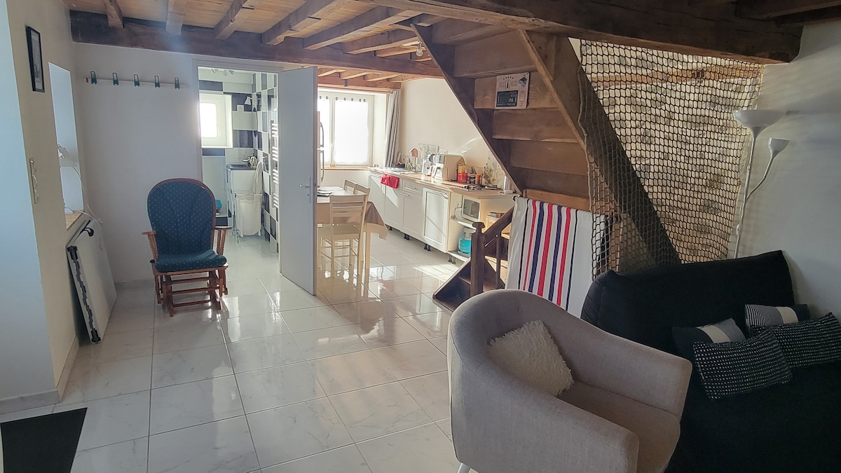 Simplifiez-vous la vie dans ce logement paisible et central. Rénové en avril 2024, vous bénéficiez du cuisine avec plaque à induction, four micro ondes, cafetière (avec café), thé sucre... Un coin salon avec télévision et canapé . La suite parentale comprend la salle de douche. Vous disposez d'une machine à laver. L'appartement se situe en plein centre ville mais est au calme de part son emplacement en retrait dans une cour intérieure.