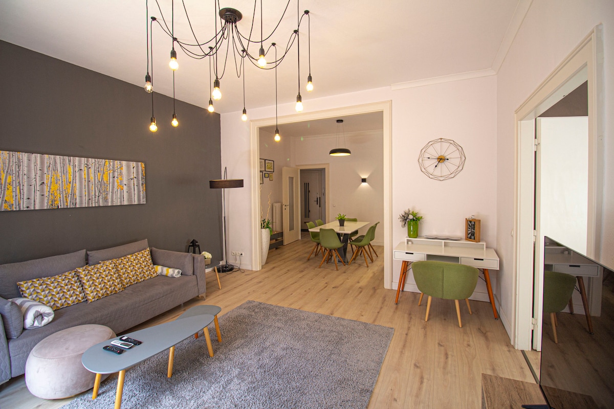 Appartament bix-xemx, b '2 kmamar (67 m2) b' gallarija spazjuża. Post perfett fiċ-ċentru tal-belt. L-appartament mill-aqwa b' lift jista' jilqa' b' mod komdu 2 sa 4 klijenti f' 2 kmamar separati b' sodda king size u sufan komdu konvertibbli. Hija żona verament popolari fiċ-ċentru ta 'Budapest, is-Sinagoga famuża u Szimpla ħdejn l-appartament kif ukoll ristoranti, pubs, postijiet tal-arti u banjijiet. Ftit minuti mixi 'l bogħod mix-Xmara Danubju, il-Pont tal-Katina, il-Bażilika.
