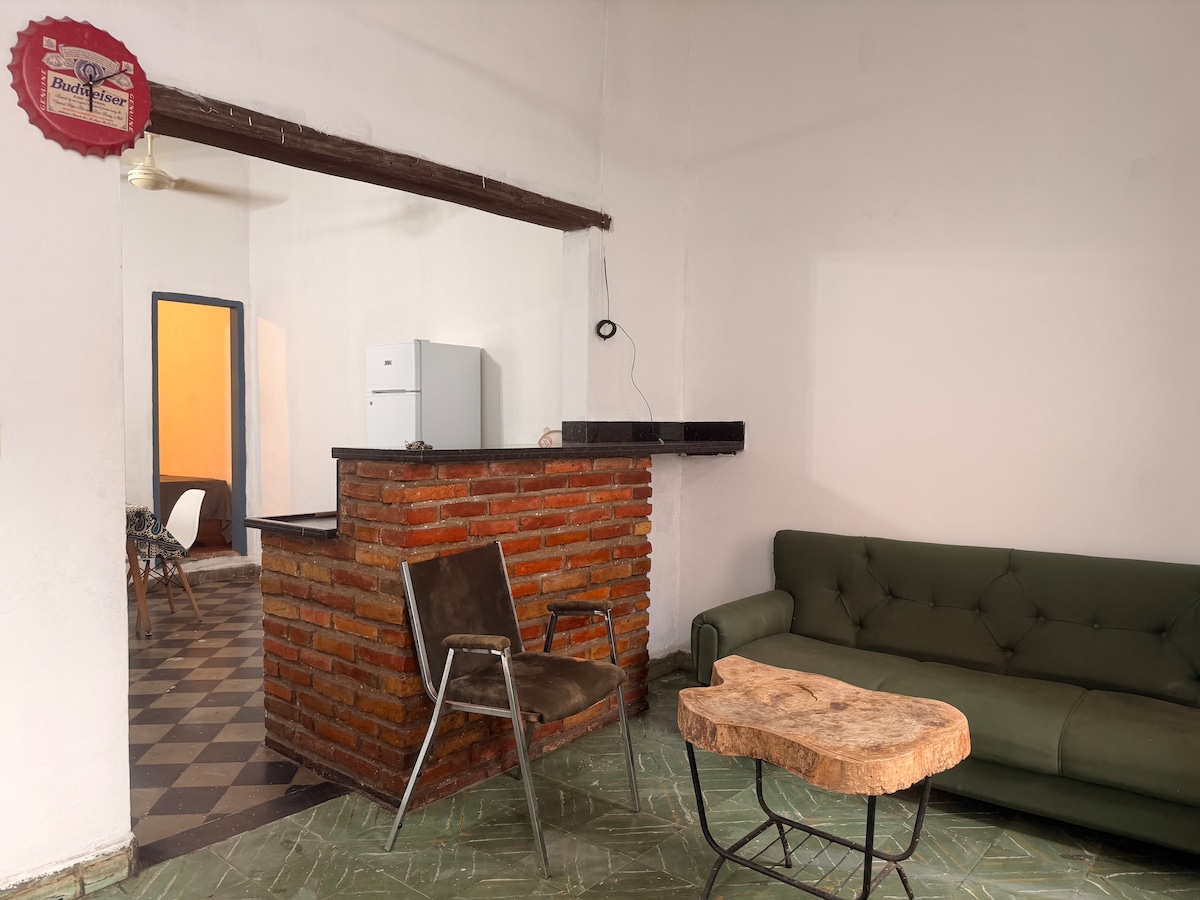El lugar tiene una pieza con cama, mesita con sillas y una sala con sofa y una zona de trabajo Todo es vintage nada es nuevo, toalla costo aparte Esta arriba de un bar y lo fines de semana puedes escuchar música en vivo en el bar. El ruido capaz molesta un poco en la pieza, si tienes sueño liviano les va ser difícil Muy buena opción si vienes a buscar conocer gente, pasarla bien, es el mejor lugar, en la zona de bares en carmelitas Incluye desayuno En la cafetería de lunes a vier