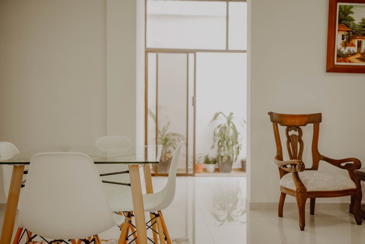 Gawdi żjara unika f' dan l-appartament sabiħ u komdu. Dan l-ispazju joffri salott mdawwal, kċina mgħammra b' kollox, 3 ikmamar tas-sodda b' arja kkundizzjonata u 4 sodod għal sa 7 persuni, Smart TV, Wifi, parkeġġ, pixxina (tmiem il-ġimgħa) u park. Jinsab f' Conjunto magħluq lejn it-tramuntana tal-belt, qrib Centro Comercial Guatapurí, Parque de La Leyenda, supermarkets u ħwienet. Agħmel dan l-appartament id-dar temporanja tiegħek u għix esperjenza mill-isbaħ!