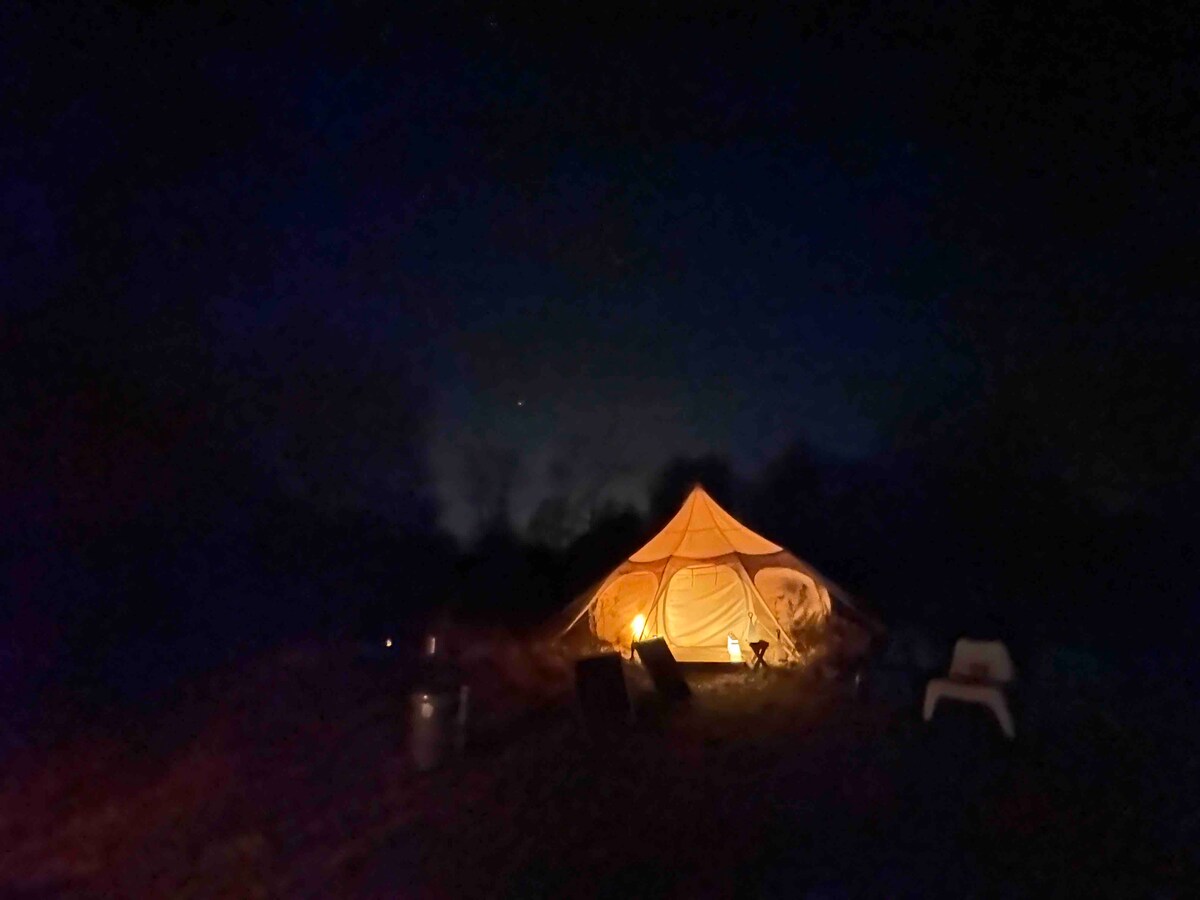 Tinda għat-taraġ tal-istilel imsaħħna għall-koppji, il-ħbieb, il-familji u l-gruppi, f'ambjent mill-isbaħ fost il-parks nazzjonali u l-parks tal-istat, b'aċċess għal kumditajiet bħal doċċa ta' barra bl-ilma sħun fis-sajf u fil-ħarifa, u sawna b'xejn. It-tinda għandha friġġ, fann b' saħħtu u enerġija solari għall-mowbajls u l-gadgets tiegħek. Is-sit jinkludi firepit b' grilja tal-grill, kif ukoll siġġijiet għat-tim kollu. It-tinda għandha sodda queen u żewġ bunk beds (4 persuni). Aħna nħejju s-sodod skont in-numru ta' nies li jkollok.