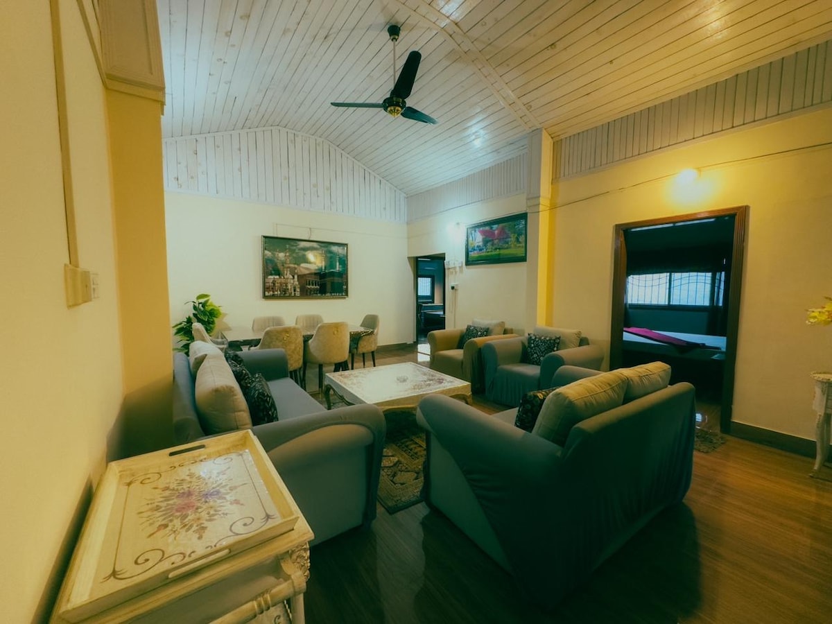 Fil-qalba ta' Abbottabad, minuta mixja 'l bogħod mill-KKH ewlenija, u qrib l-Awtostrada u t-triq Galliat. Il-post huwa aħdar ħafna, paċifiku u kwiet, b' veduti mill-isbaħ mill-bejt u l-gallariji. Post perfett għall-familji u għal żjarat itwal. Il-BBQ fuq il-bejt jista' jagħmel iż-żjara tiegħek waħda li tiftakar. Il-post huwa l-propjetà privata tal-host u l-host ma jgħix hemm. Sikura u sigura ħafna.
