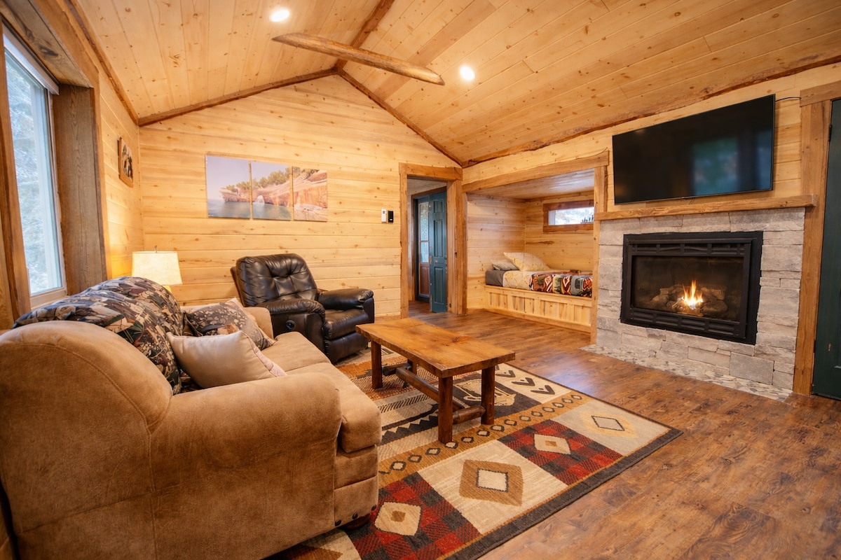 Il-kabina tagħna tinsab fuq ix-xmara AuTrain sabiħa, ftit minuti biss 'il bogħod mil-Lag Superior. Huwa mgħammar kompletament biex jagħmel iż-żjara tiegħek rilassanti u divertenti! Kċina sħiħa li tinkludi forn, friġġ, u grill tal-BBQ biex issajjar dak li tixtieq. Hemm sodda doppja 'queen' u fireplace tal-gass naturali u kamra tal-banju kompluta. Għandna wkoll gverta minn fejn ingawdu l-fawna selvaġġa. Kolibri, Blue Heron, wiżż, papri, ajkla, lontri tax-xmara u iktar, kollha ġew imtebbgħin mill-veranda ta 'quddiem.