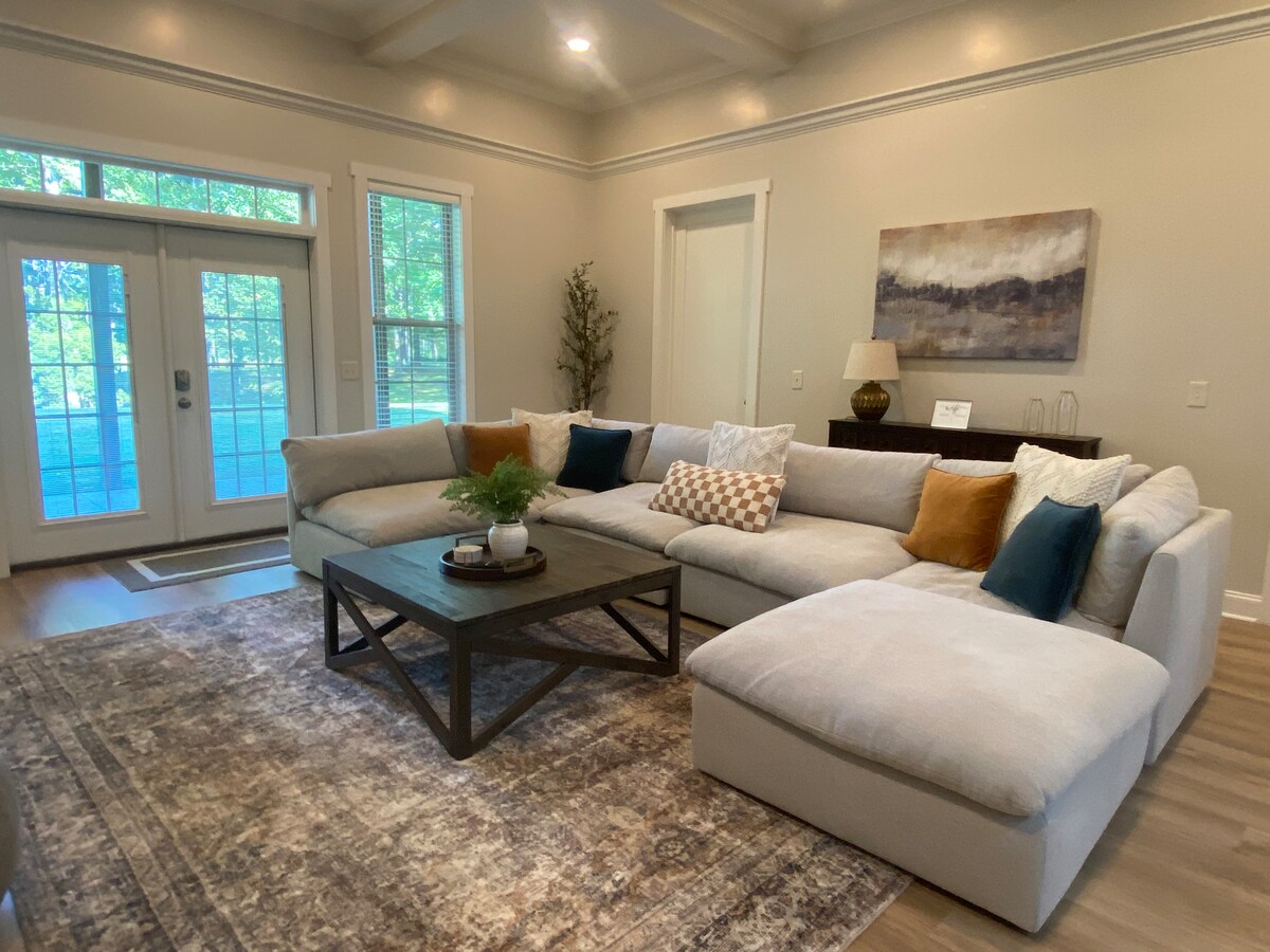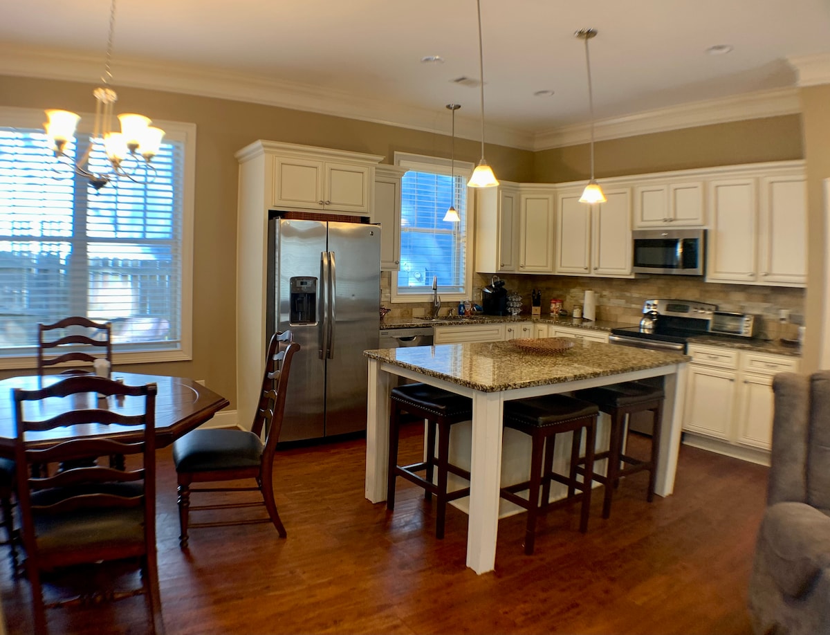 Ibbukkja issa! Kapaċità ta' 7 adulti u 2 tfal. Id-dar tinsab f'post perfett, ftit blokki 'l bogħod miċ-ċentru tal-belt u l-Università ta' Auburn. Vjaġġ qasir lejn kwalunkwe kampus. Jordan Hare jinsab biss 7 kwarti ta' blokka 'l bogħod! Ideali għall-familji, vjaġġi tax-xogħol u kwalunkwe grupp żgħir li jkun qed iżur il-belt. Kċina Mgħammra B'Kollox. It-3 ikmamar tas-sodda kollha jinsabu fuq, kull waħda b'kamra tal-banju sħiħa u walk-in closet. Logħba ta' Ħarba għall-klijenti bit-tema ta' Auburn. Il-bitħa mgħammra b'postijiet fejn tista' tpoġġi, fuklar għan-nar u bbq. Parkeġġ għal 5 karozzi: garaxx għal 2 karozzi + 3 karozzi fid-daħla.